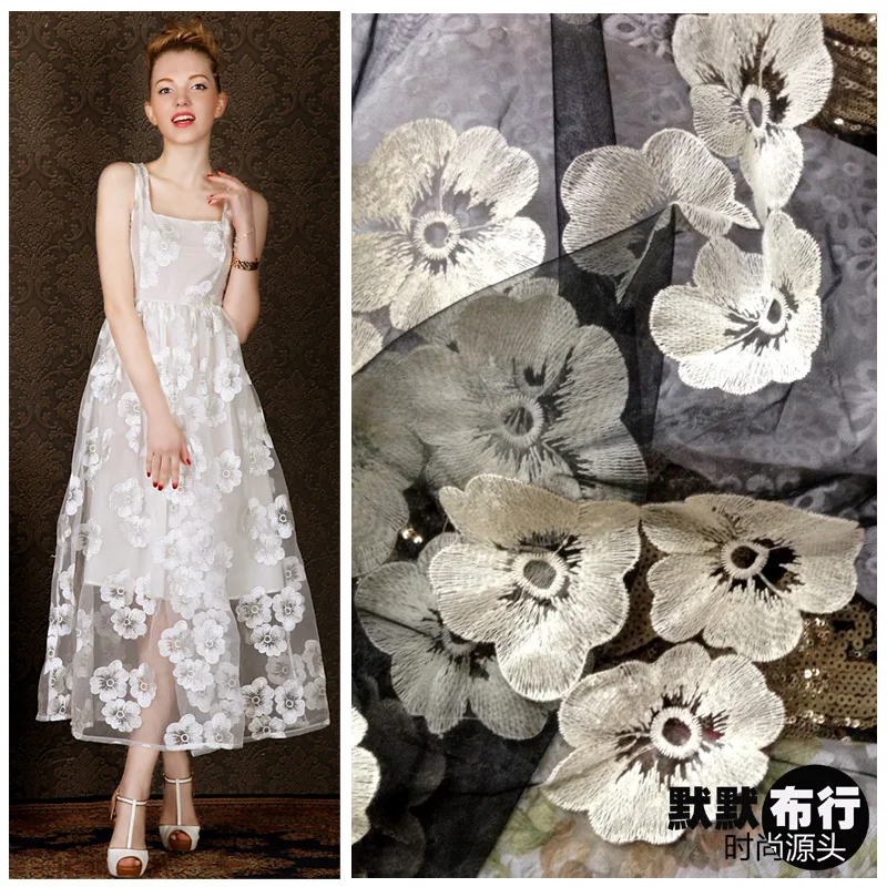 Бесплатная доставка вышитая ткань трехмерная вышивка летнее цельное платье телесного цвета кружевная одежда Сделай Сам шелк