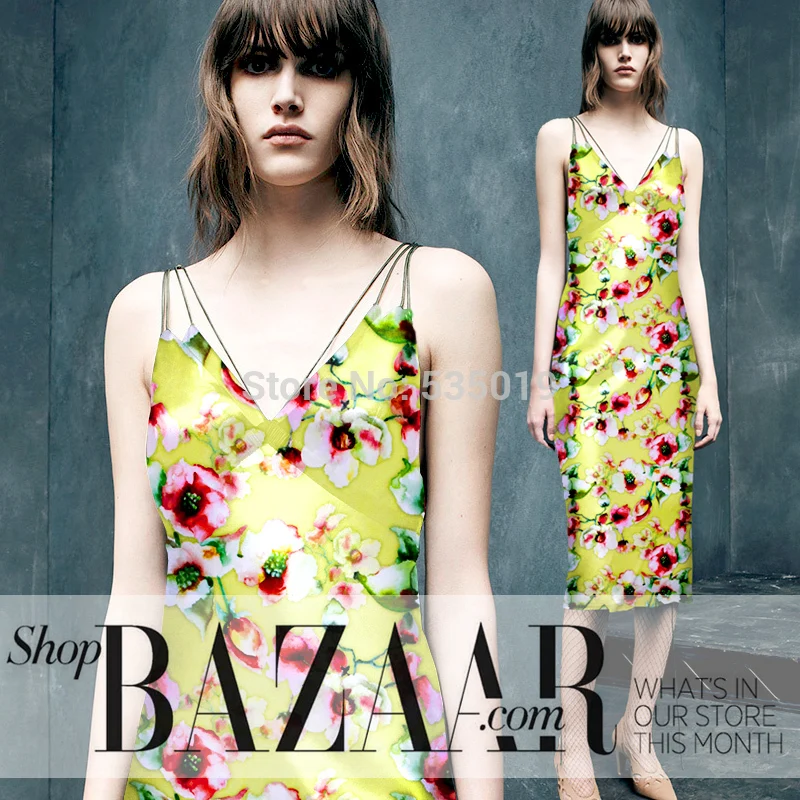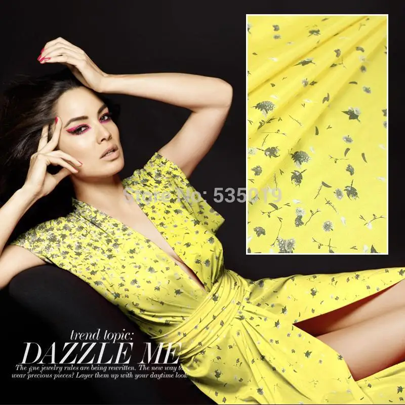 Желтая ткань с принтом, Высококачественная Модная шелковая ткань, платье-рубашка, шелковая атласная стрейчевая ткань, оптовая/розничная продажаUS $52,30/Метр