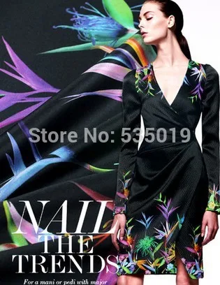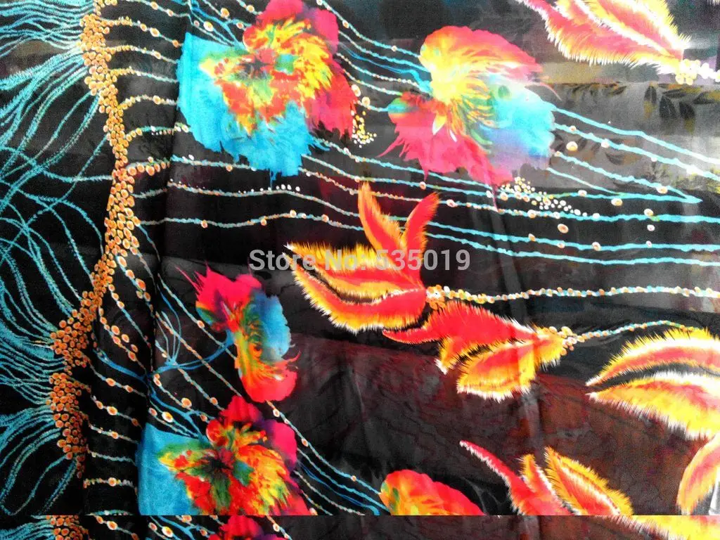 2014 Новый супер французский кружевной черный комплект с цветочным принтом 100% натуральный шелк ткань платье Colth материал для шитья текстиля OEMUS $87,60/ЛотМетров/лот