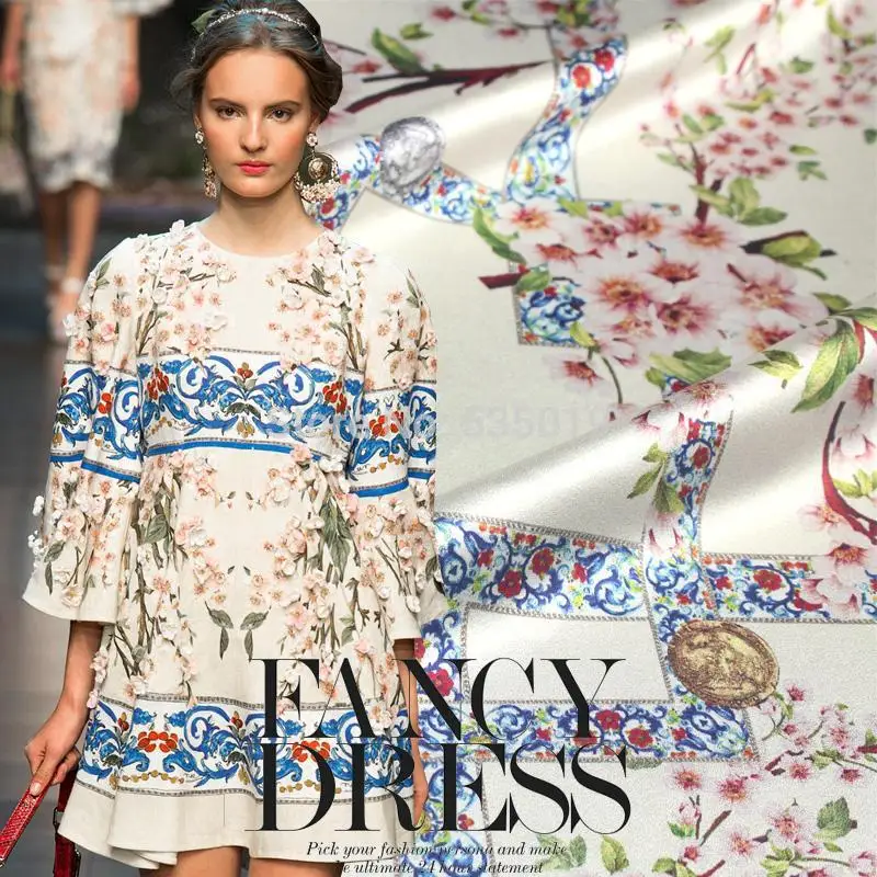 Элегантное эластичное шелковое атласное платье для весны и лета, шелковое платье-рубашка белого цвета с принтом, современная ткань для самостоятельной сборки, ширина 113US $53,30/Метр