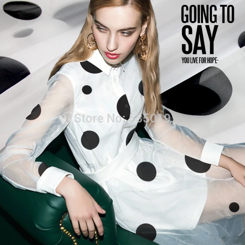 Высококачественная Белая Блузка с узором в горошек, 100% чистая шелковая ткань, органза, тонкая весенне-летняя одежда, платья, тканьUS $53,00/Метр