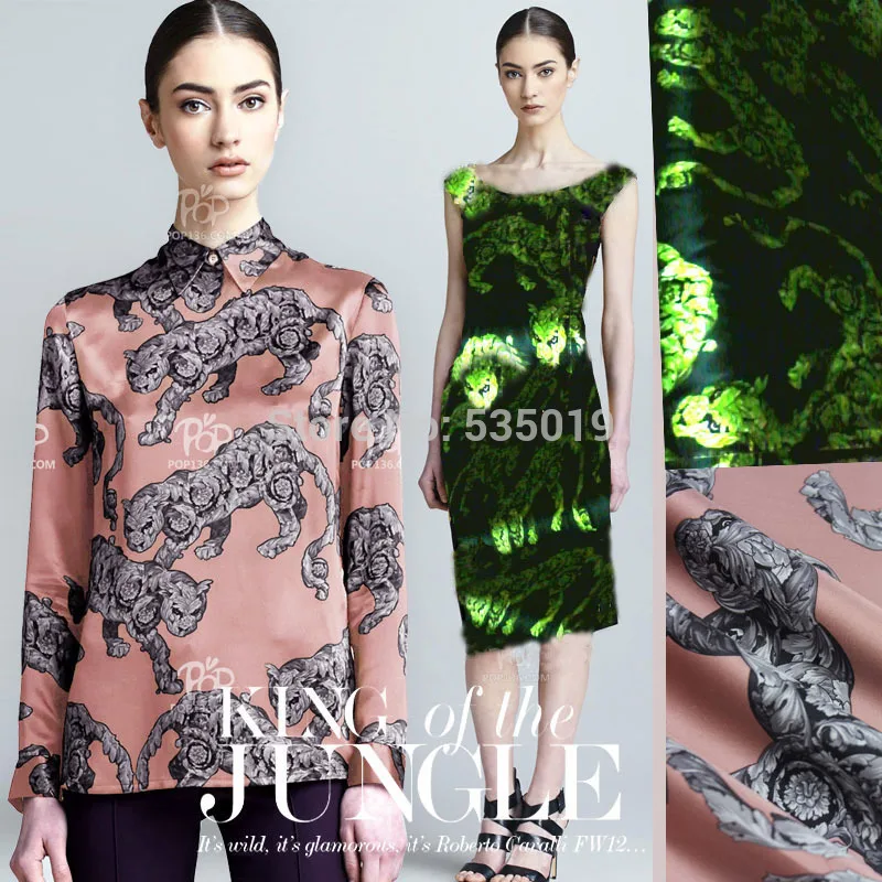 Шелк высокого качества тутового шелкопряда шелкового материала цельное платье брюки большой Леопардовый принтUS $48,80/Метр
