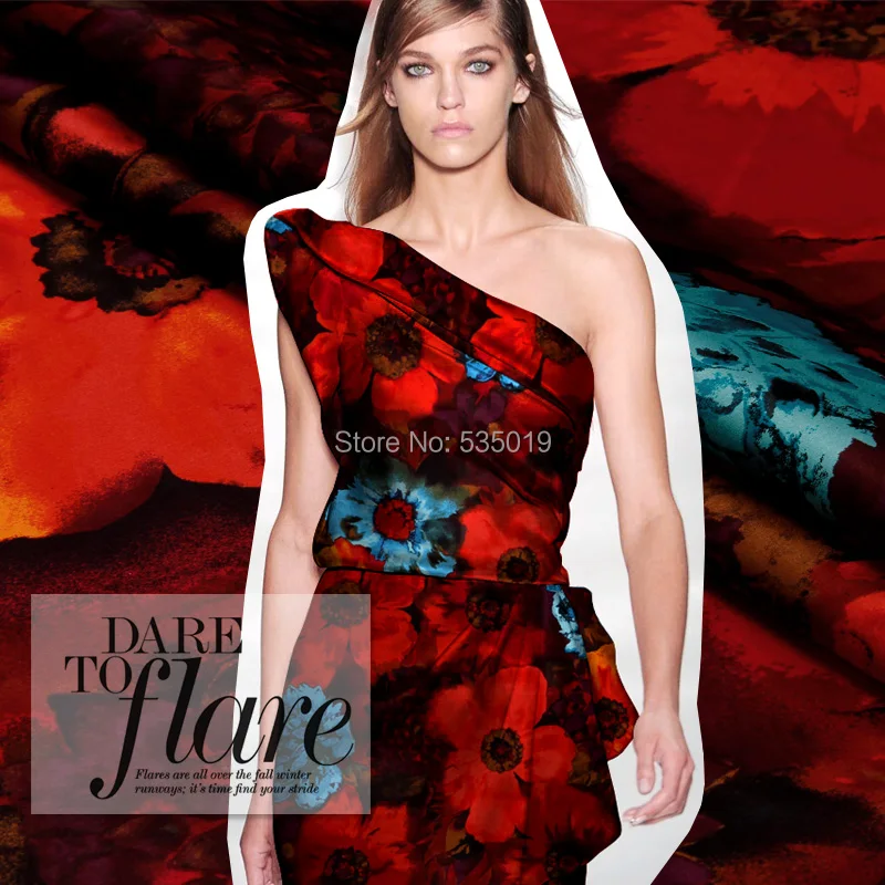2014 Новая модная женская супер Высококачественная Компьютерная Цифровая живопись Тяжелая эластичная натуральная шелковая ткань оптом и в розницуUS $98,90/ЛотМетров/лот