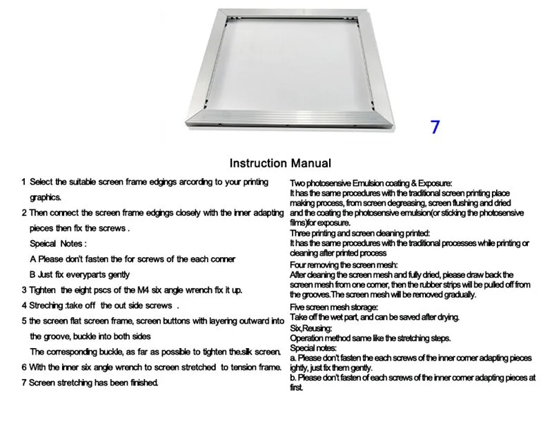8. Для самостоятельного натяжения рамы экрана требуется только внутренний шестигранный ключ toM3 и M4, людям не нужно приобретать другие материалы и инструменты, которые могут быть из натяжения, изготовления пластин, печати, установка для сохранения сетки.