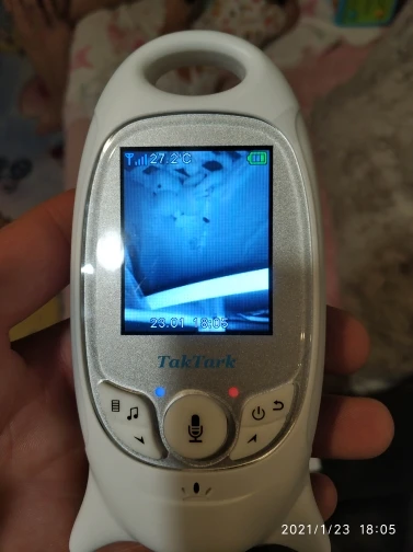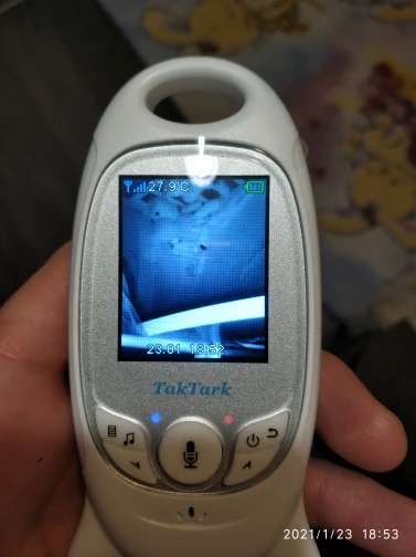 Отличное устройство, пользуемся уже 2 года, очень удобно! Уронили, повредили механизм и пришлось заказать новую няню. Ночное видение, длинный провод, понятное пользование, есть связь с ребёнком по кнопке, датчик температуры привирает, но изменение градусов отслеживает. Прибором очень довольны!