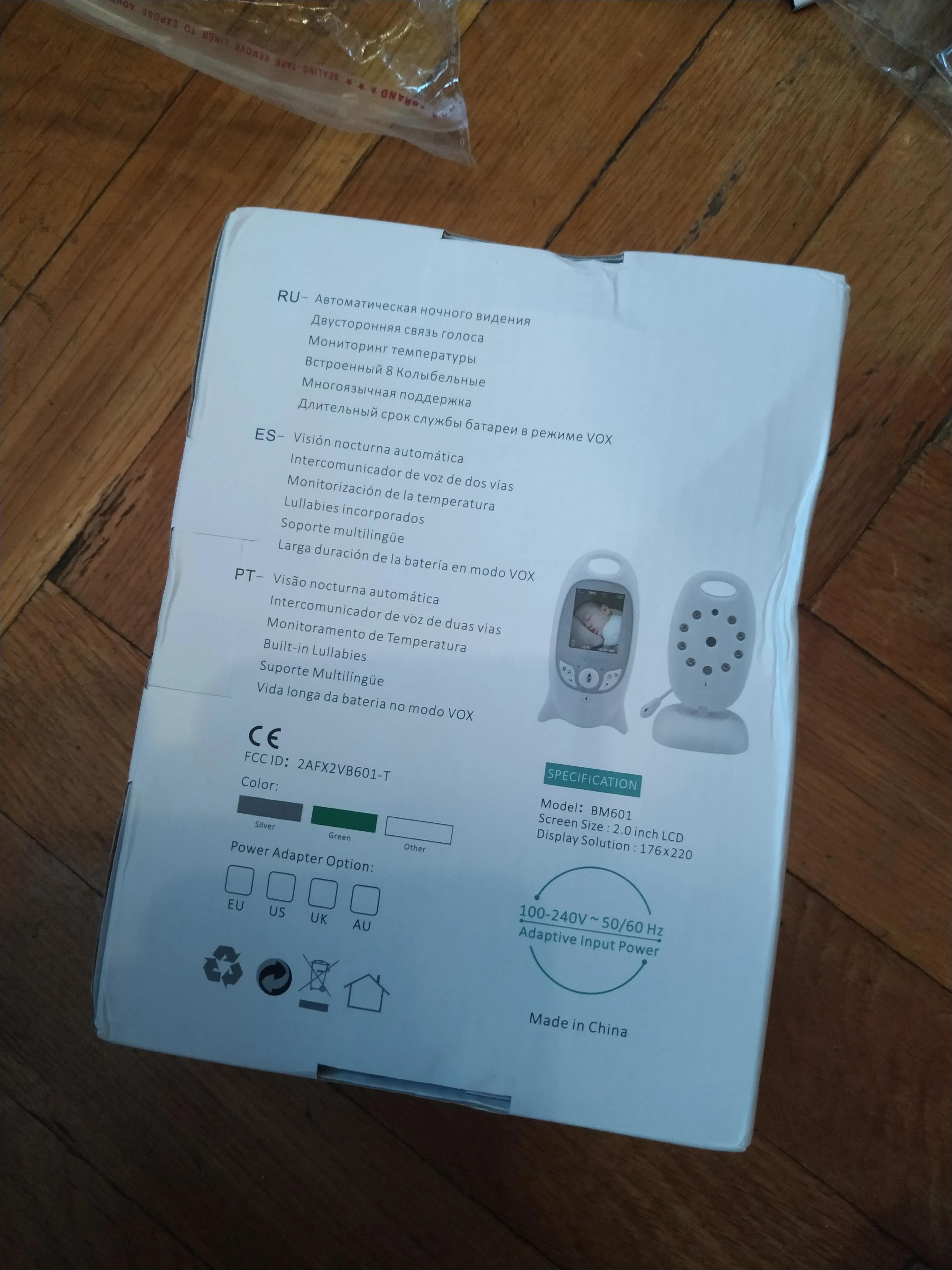Очень хорошая радио няня. Заказ пришел за 4 дня,очень быстро. Доставка курьером прямо домой,бегать и забирать не нужно. Все понятно,есть русский язык в настройках. будильник для кормления. обратная связь с ребенком. ночной режим. колыбельная. Есть небольшая задержка в 1-2 секунды но это не существенно. камера и дисплей работают от зарядки,провода длинные 2 метра. дисплей имеет аккамулятор. что тоже не мало важно