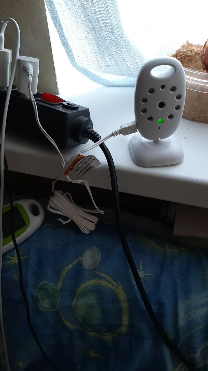 нормальная видео няня. единственный минус нет батареи на камере. а так все устраивает. чувствительность звука впечатляет. слышно все хорошо.