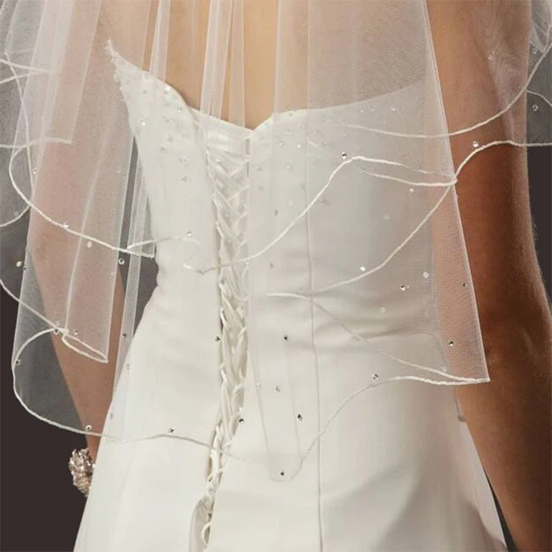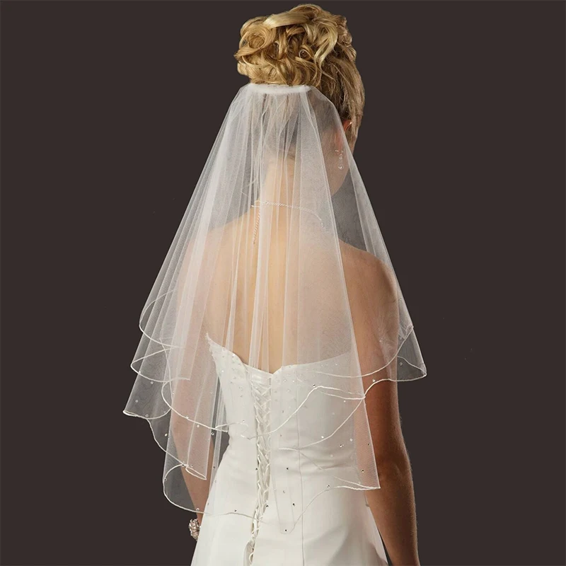 Свадебная простая вуаль для невесты, Белыйцвет слоновой кости, 2-уровневый короткий обруч длиной до локтя, обруч с краями, свадебные головные уборы