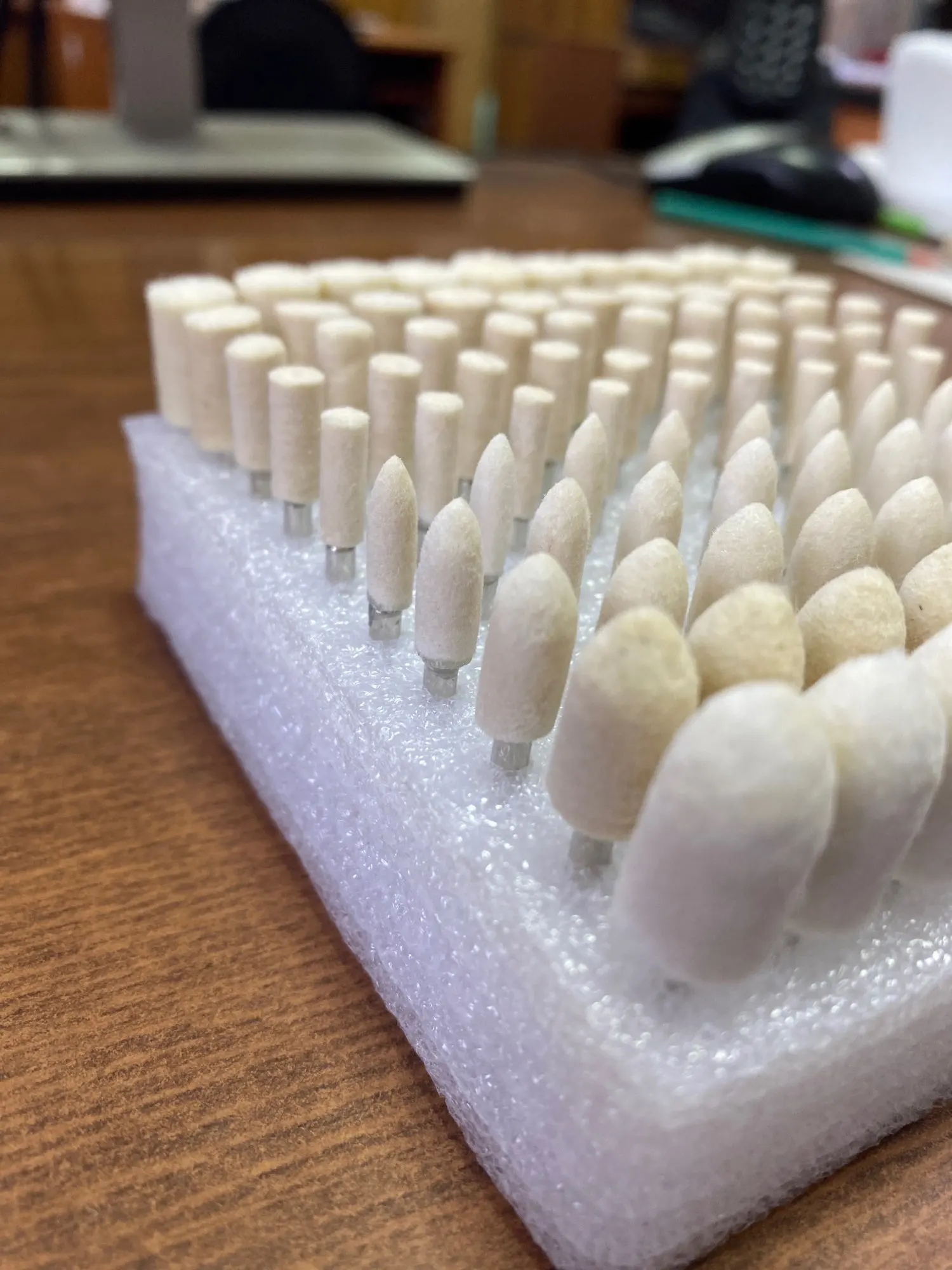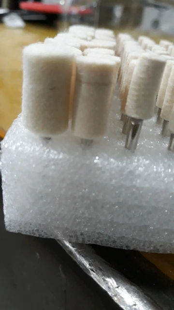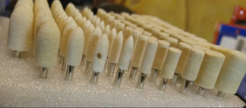 Это очень маленький шерстяной войлок, головки для полировки и полировки мелких предметов и для труднодоступных мест с помощью вашего или родного инструмента Dremel. Шерстяная войлочная головка и ее оправка (металлический вал, прикрепленный к головке) хорошего качества, они выглядят точно так же, как на картинке. Головки, похоже, прослужат долгое время при повторном использовании. Рекомендуется установить скорость вашего инструмента Dremel как можно меньше. С другого сайта, кто-то предупредил, что самые маленькие головки могут сломаться, если вы используете слишком много силы. Это связано с ограничением материала для крепления металлического вала. Я доволен этими головками.