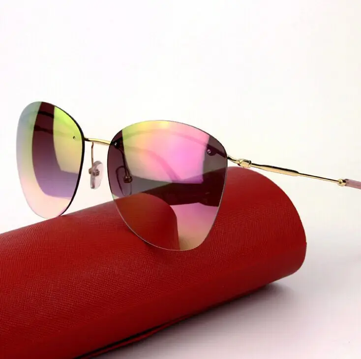 2017 Модные солнцезащитные очки без оправы с синим покрытием, мужские брендовые дизайнерские солнцезащитные очки, женские солнцезащитные очки без оправы, солнцезащитные очки с коробкой R104