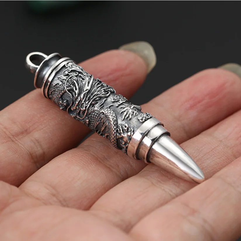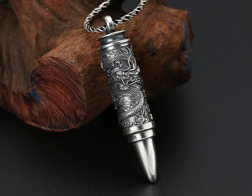 Мужской кулон в виде пули дракона из стерлингового серебра S925 пробы, стильная открывающаяся тайская подвеска в виде тайского дракона