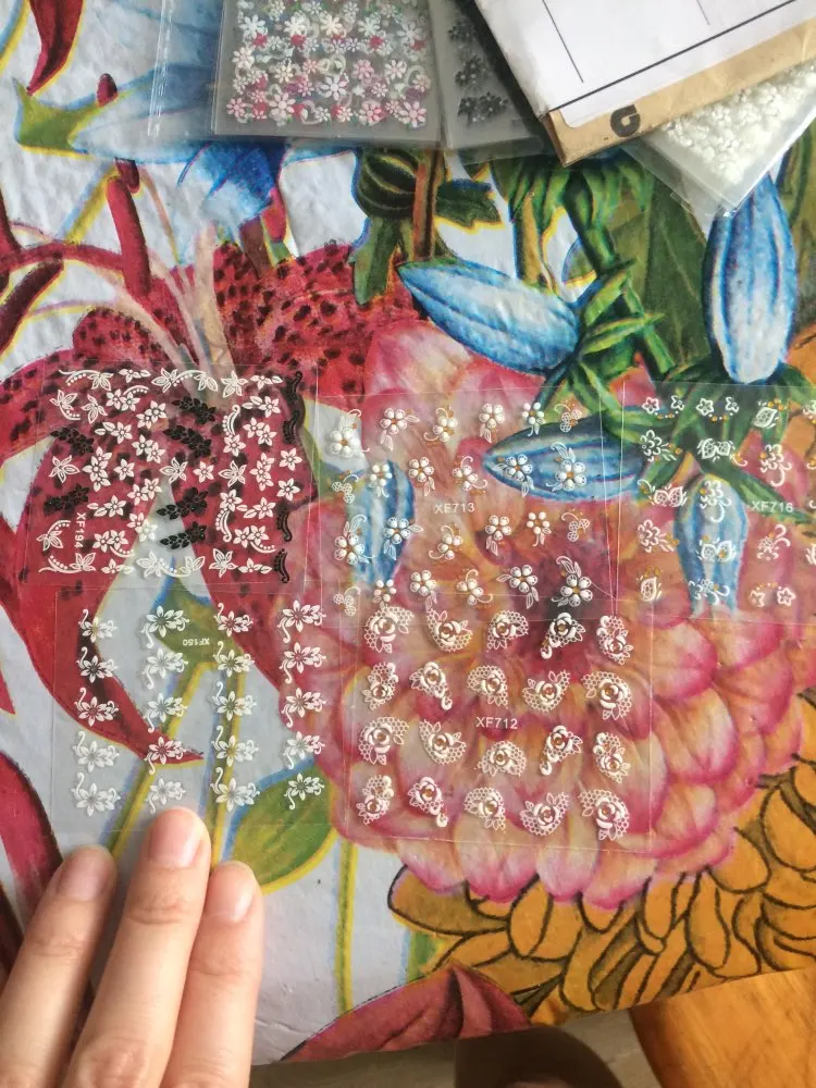 Красивые наклейки, очень довольна. На ногтях смотрятся замечательно. Доставка в Барнаул меньше месяца. Пришли в объединенной посылке вместе с другими заказами, что очень удобно. Своей упаковки у товара не было, просто листы с наклейками были вложены в почтовый конверт. Трек полностью отслеживался. Рекомендую.