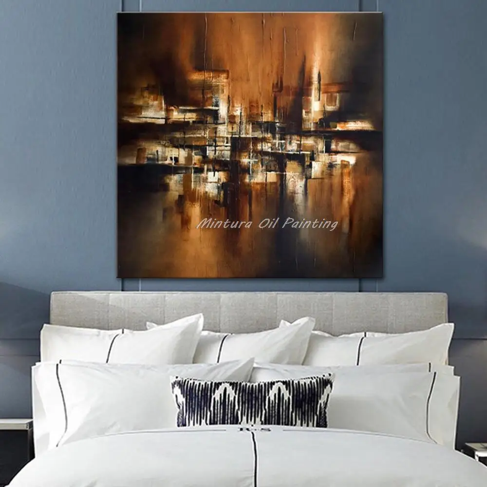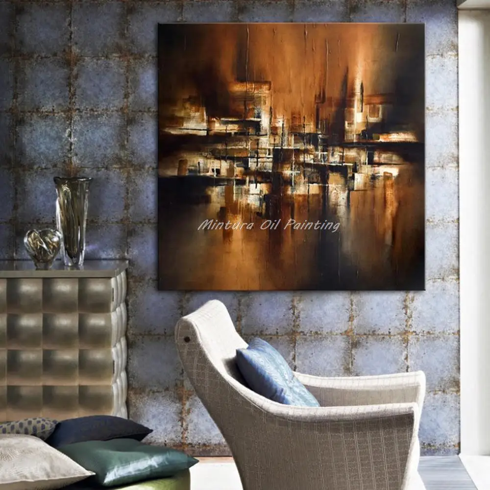 Mintura ручная роспись коричневатый пейзаж черная современная абстрактная картина маслом на холсте Настенная картина для украшения гостиной