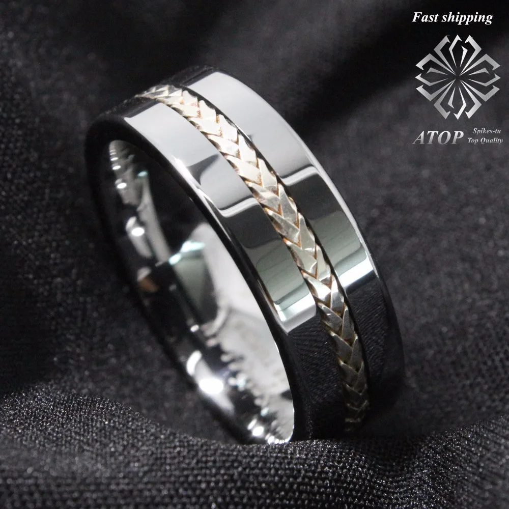 Вольфрамовое кольцо с серебряной инкрустацией, обручальное кольцо, титановый цвет, мужские ювелирные изделия, бесплатная доставка