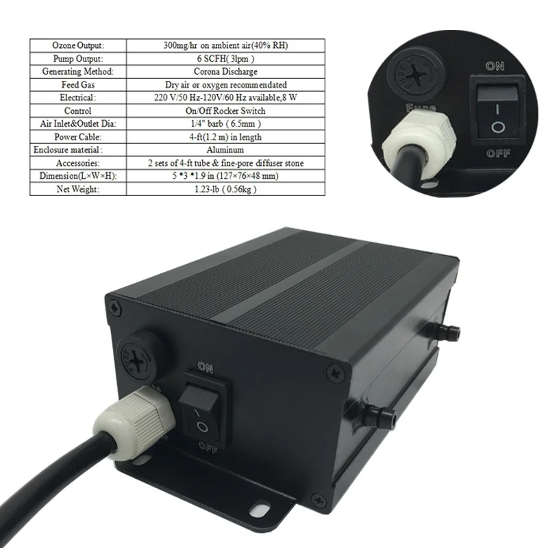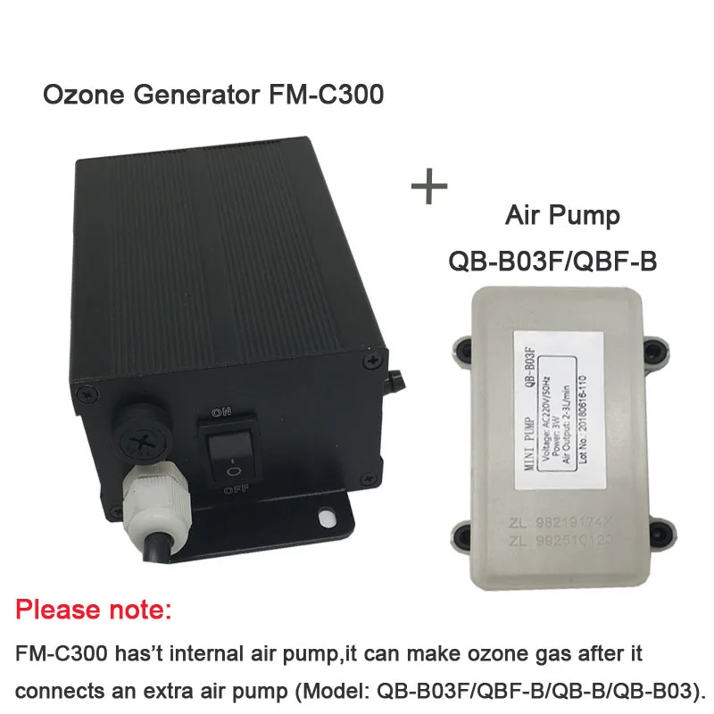 Генератор озона серии FM-C не имеет внутреннего насоса, его нужно подключить к воздушному насосу, чтобы использовать его.