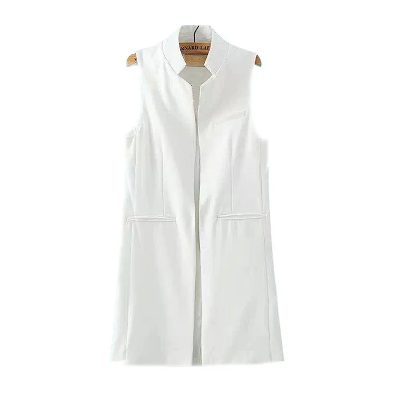 Весенний Блейзер, жилет, пальто, Женский Длинный жилет с воротником-стойкой, черный, белый, темно-синий, с двумя карманами, верхняя одежда, длинный жилет