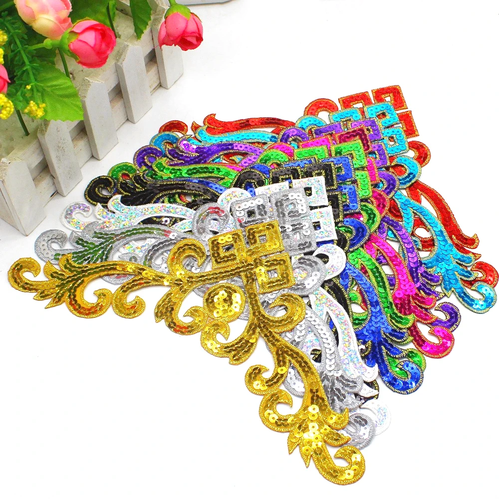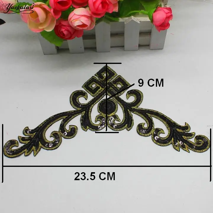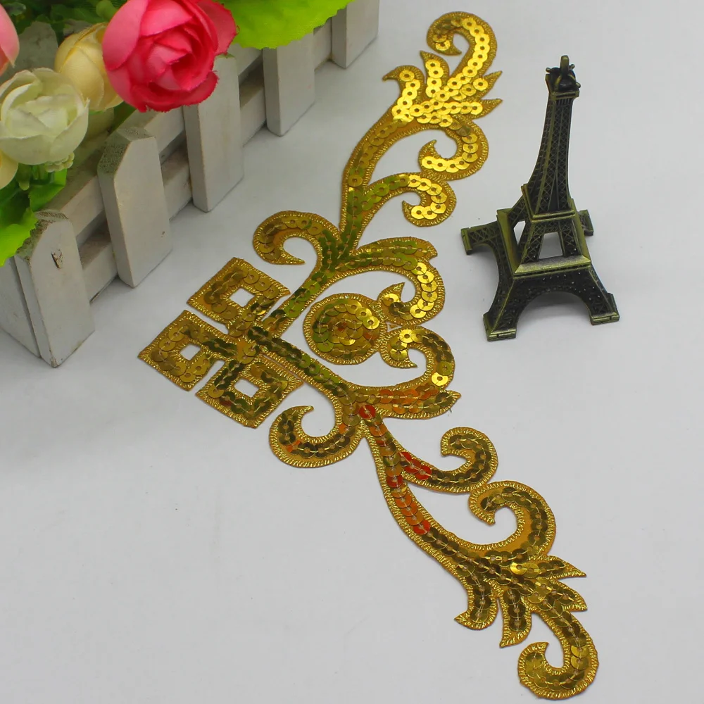 Аппликация с блестками, 1 шт., нашивки с золотой вышивкой, плавно приклеиваются утюгом, костюмы для платья 23,5*9 см
