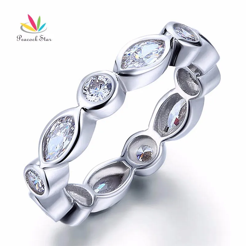 Павлин звезда маркиза сплошной 925 пробы Серебряное кольцо вечности обручальное кольцо ювелирные изделия CFR8140