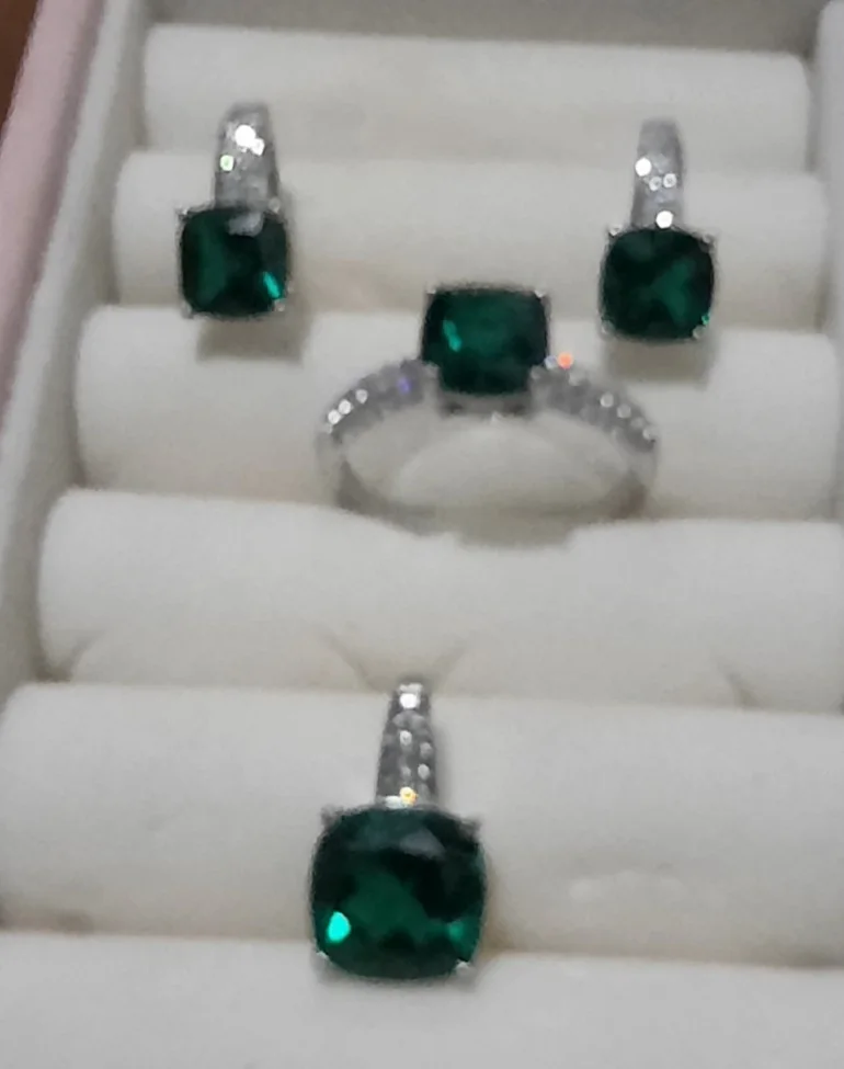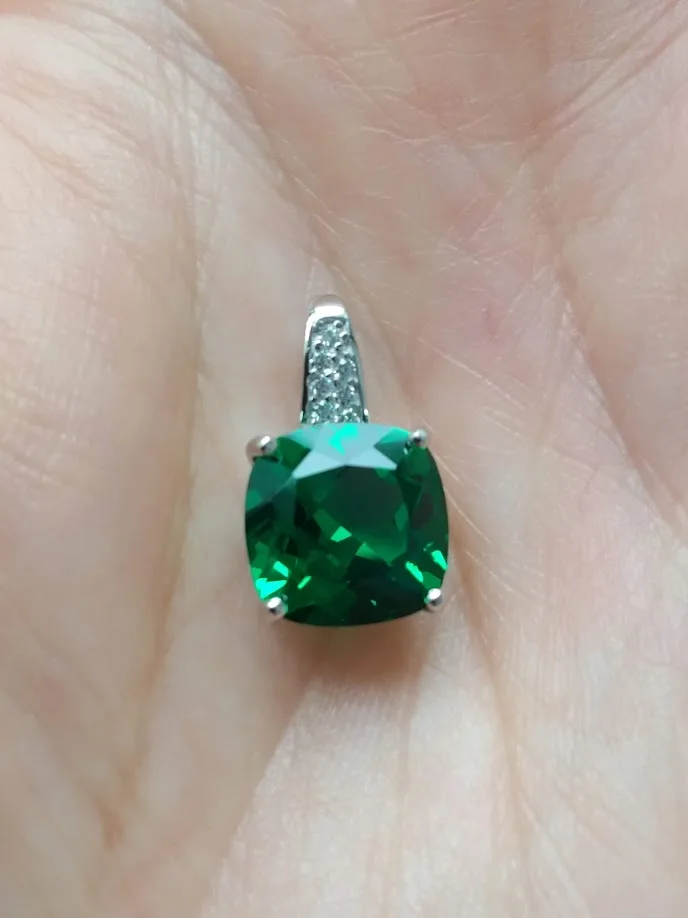 Женское ожерелье из серебра 925 пробы с искусственным зеленым изумрудом Нет цепи