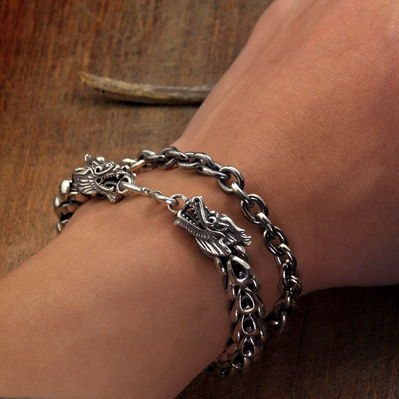 Ювелирные изделия из тайского серебра 925 пробы браслет с драконом мужской индивидуальный Ретро Модный браслет с цепочкой и звеньями S925