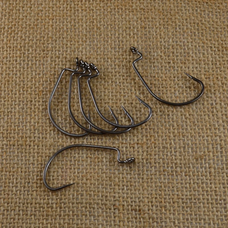 50 шт.лот офсетный крючок-червь для ловли окуня, высокоуглеродистая плавающая приманка, личинка, рыболовный крючок с широким зазором, размер 6, 4, 2, 1, 10 -50 YG82306