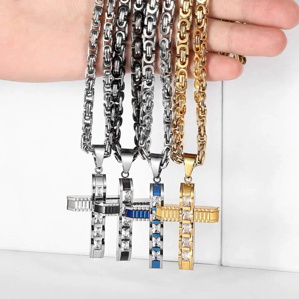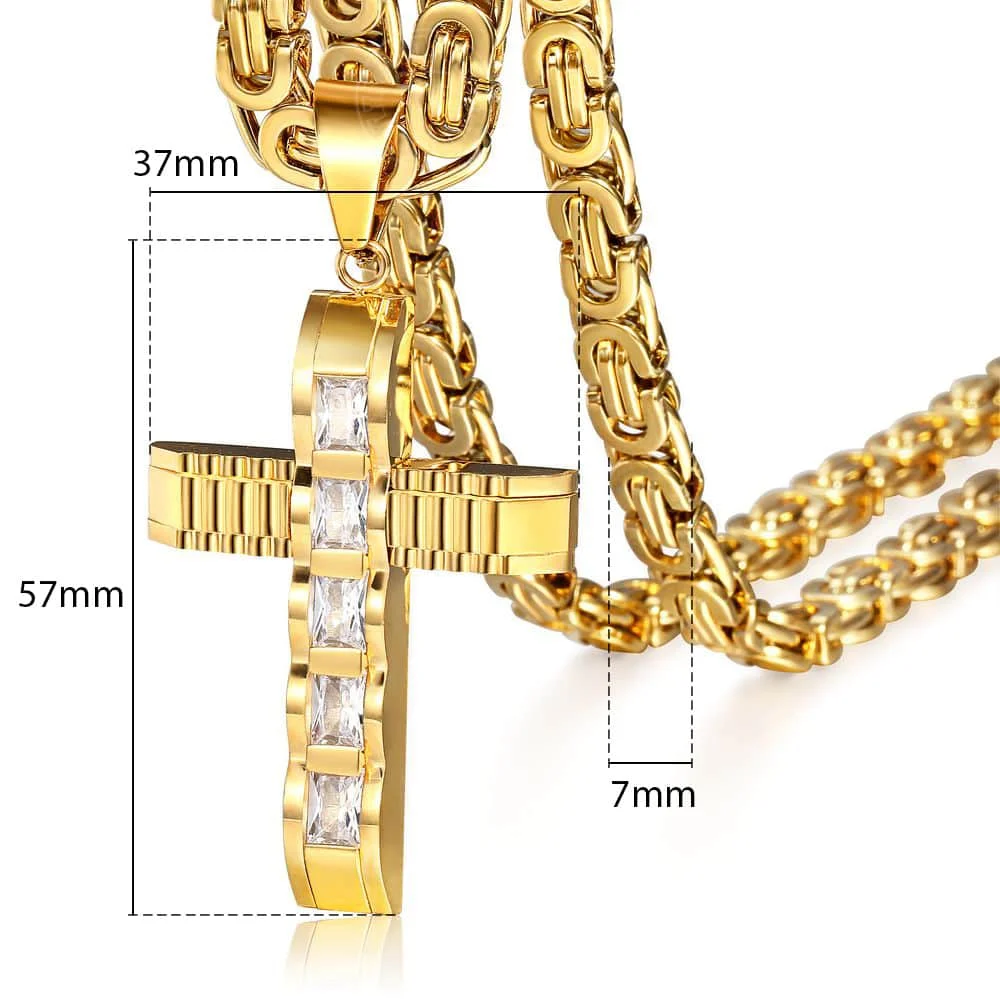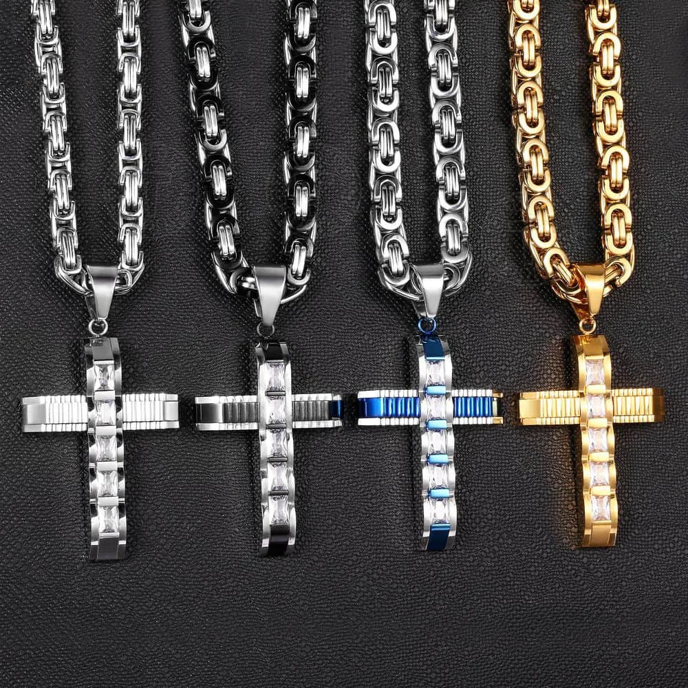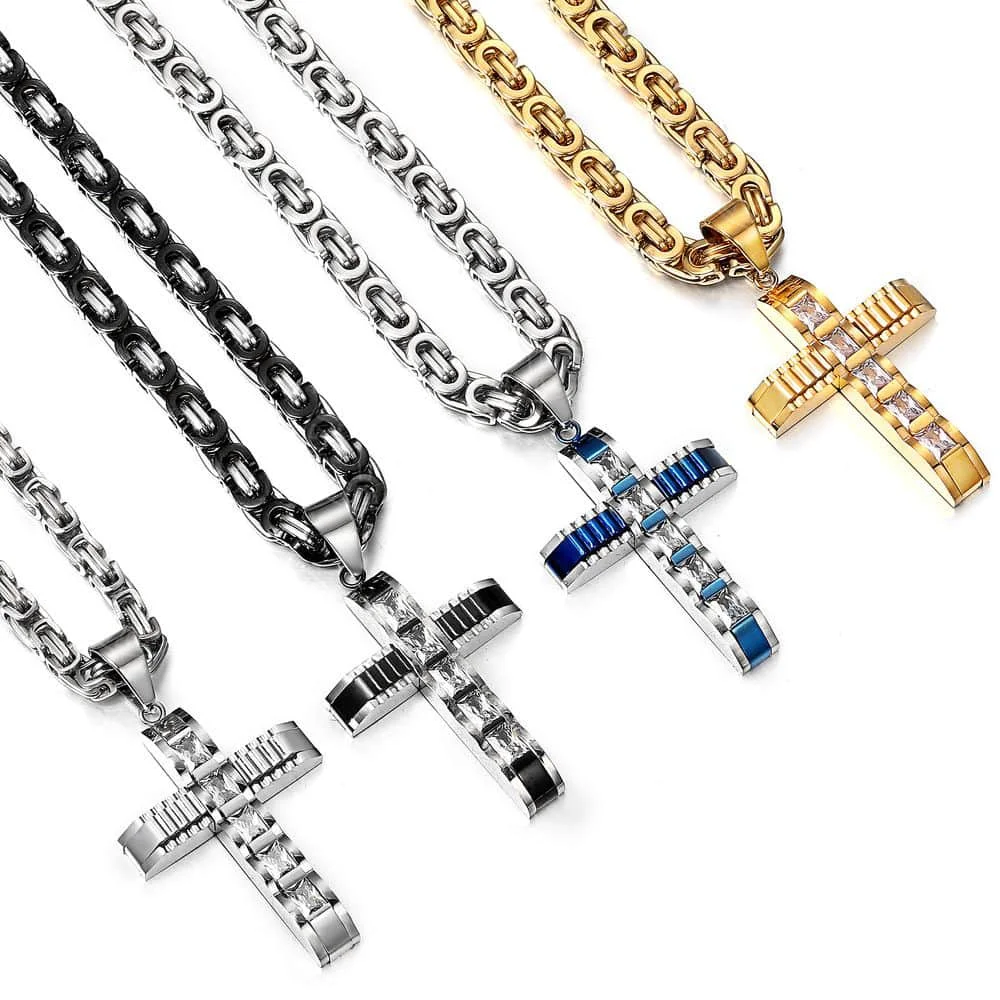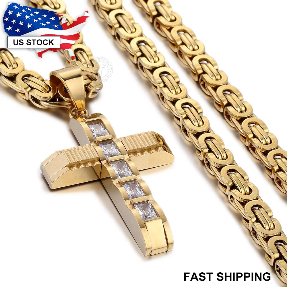 Ожерелье с подвеской в виде креста Davieslee для мужчин, цепочка из нержавеющей стали, мужские ожерелья, украшенные прозрачными правыми камнями, золотого и серебряного цвета LKP353