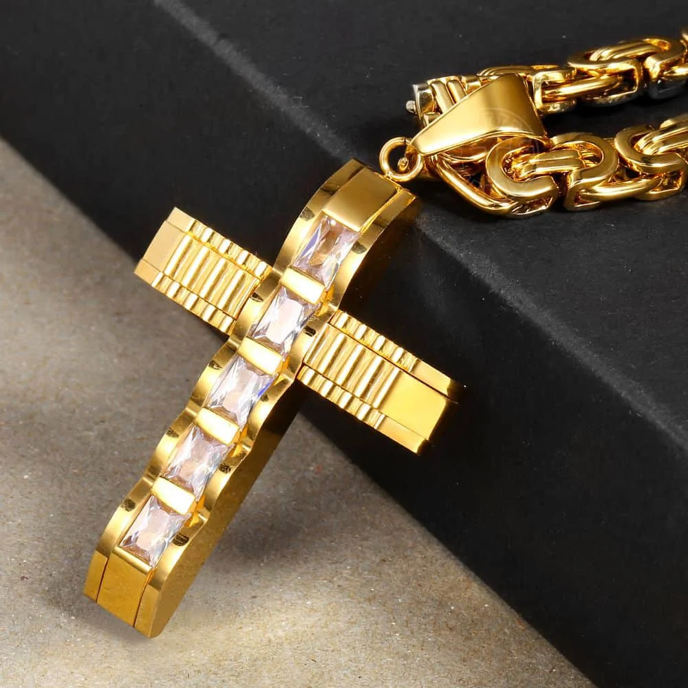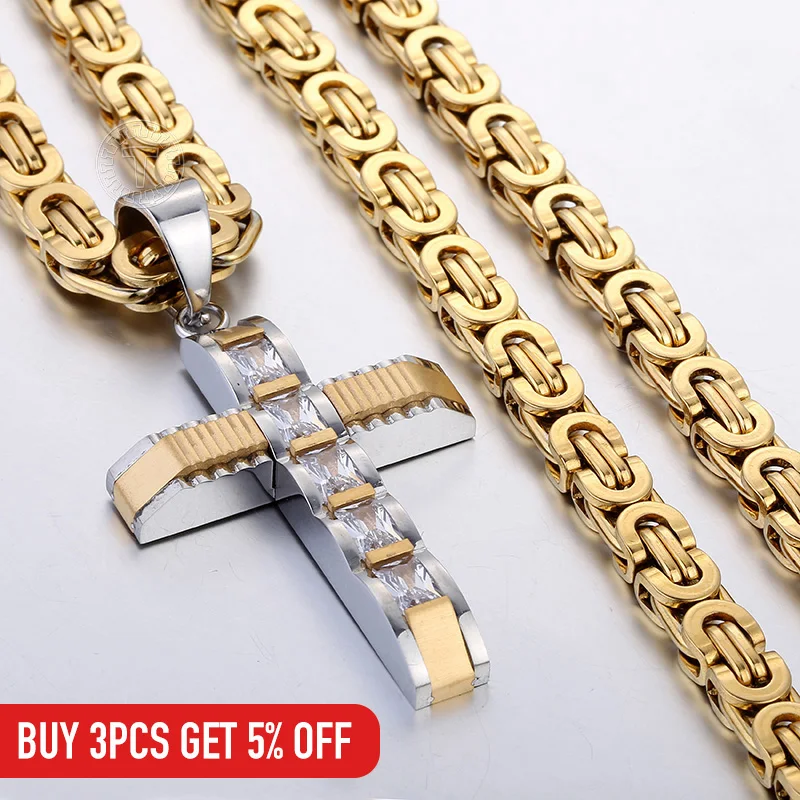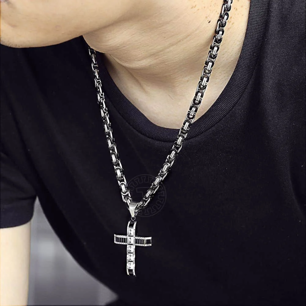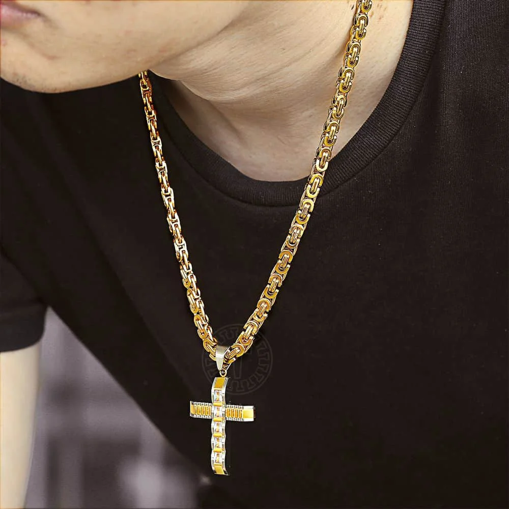 Ожерелье с подвеской в виде креста Davieslee для мужчин, цепочка из нержавеющей стали, мужские ожерелья, украшенные прозрачными правыми камнями, золотого и серебряного цвета LKP353