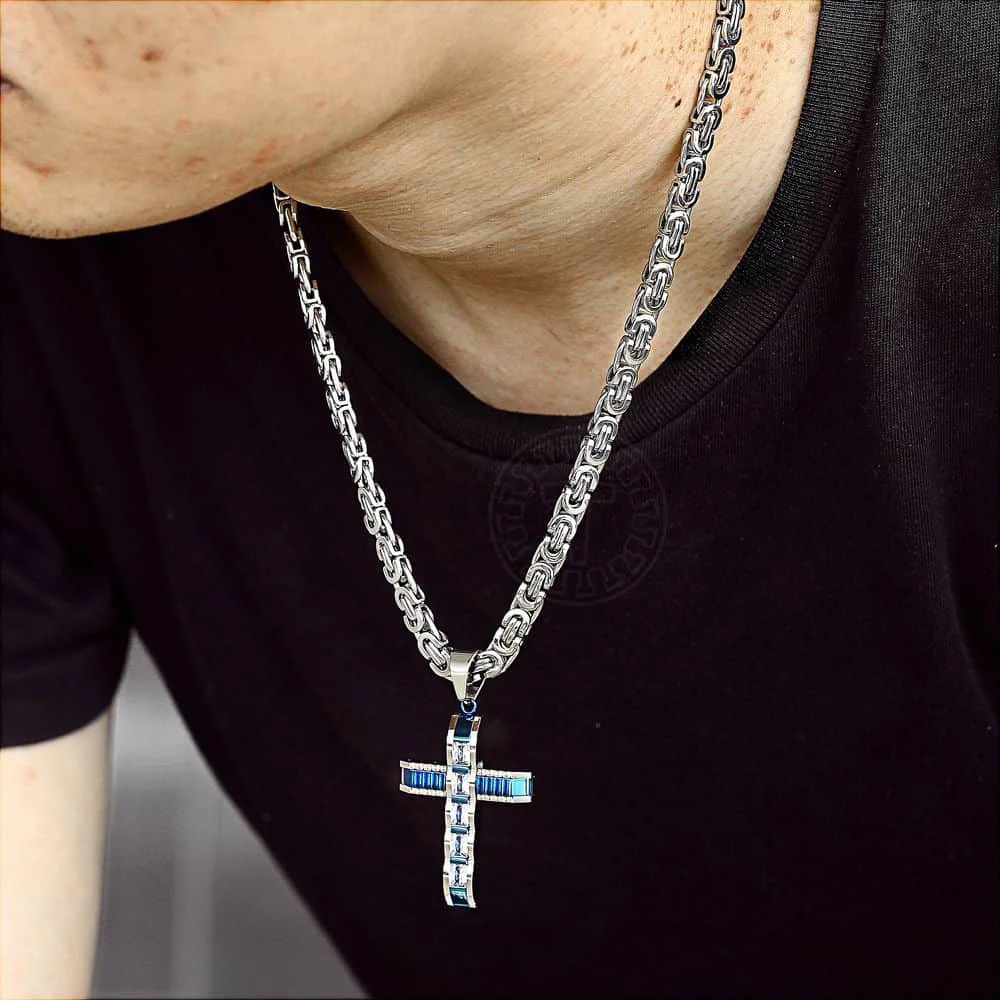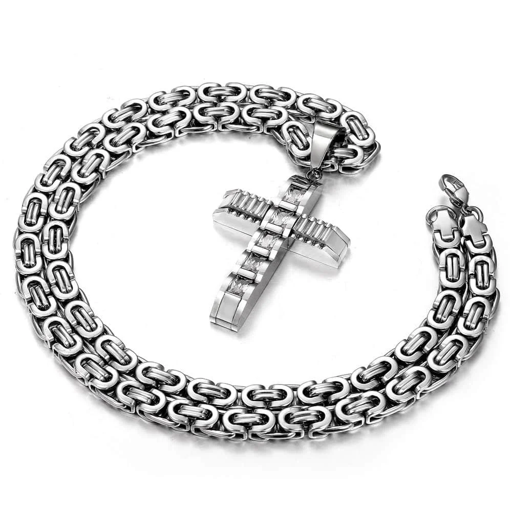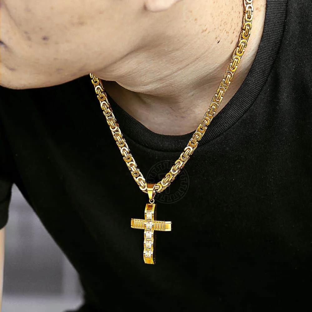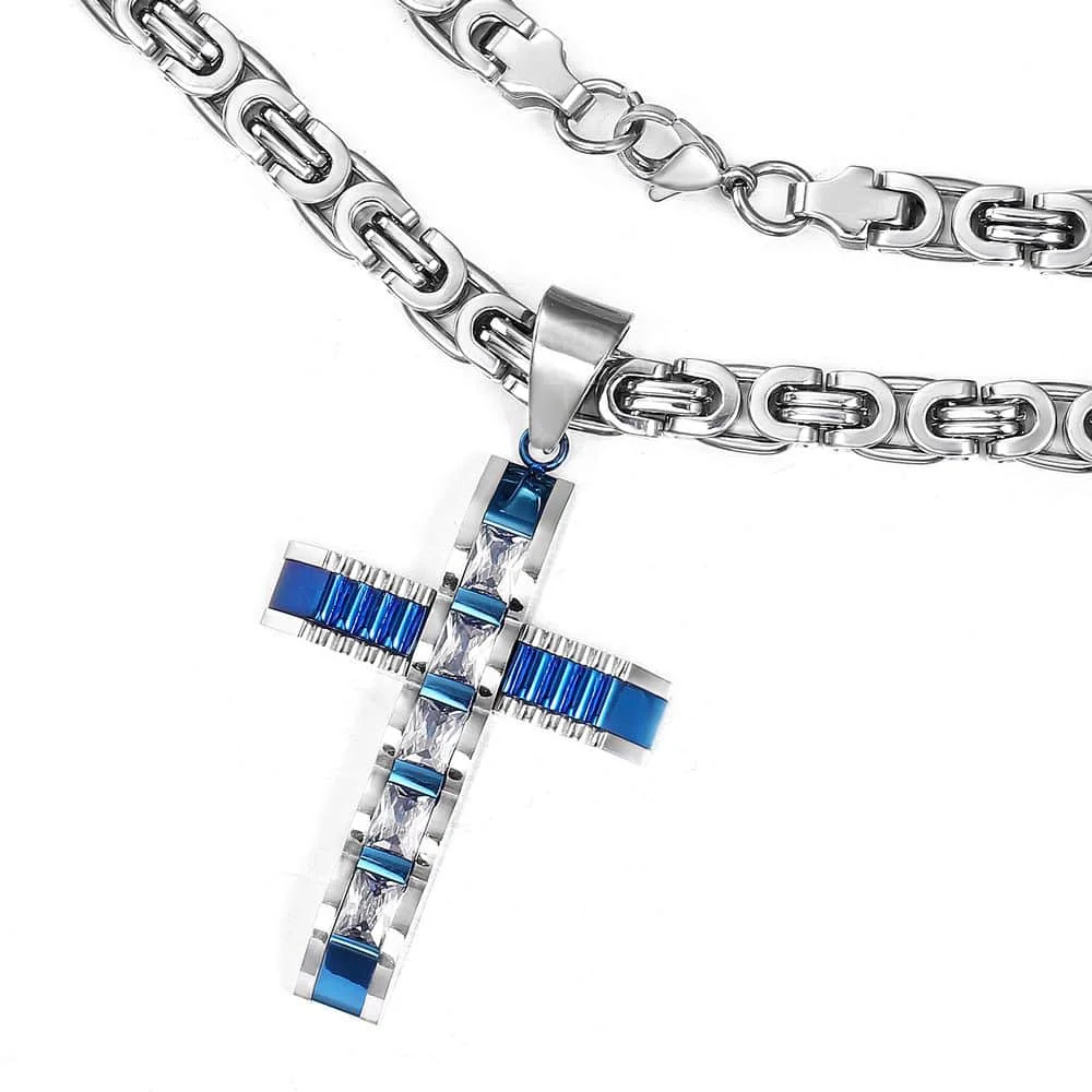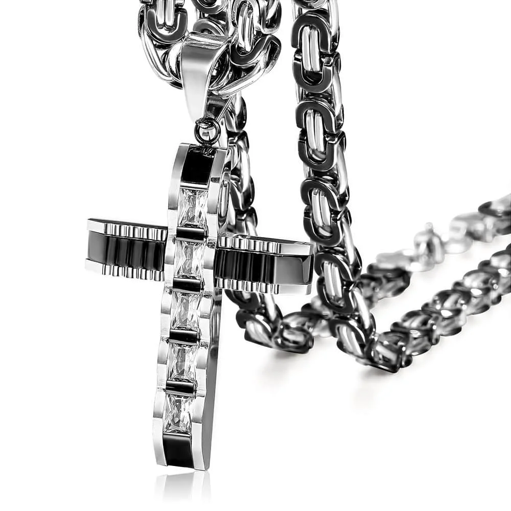 Ожерелье с подвеской в виде креста Davieslee для мужчин, цепочка из нержавеющей стали, мужские ожерелья, украшенные прозрачными правыми камнями, золотого и серебряного цвета LKP353