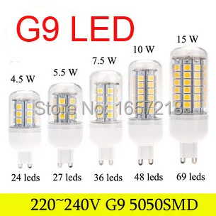 G9 кукурузный свет 4,5 Вт 5 Вт 7 Вт 10 Вт 15 Вт, светодиодные лампы 220 В до 240 В, светодиодная лампа 5050SDM, белые теплые белые светодиодные лампы, 1 шт.лот