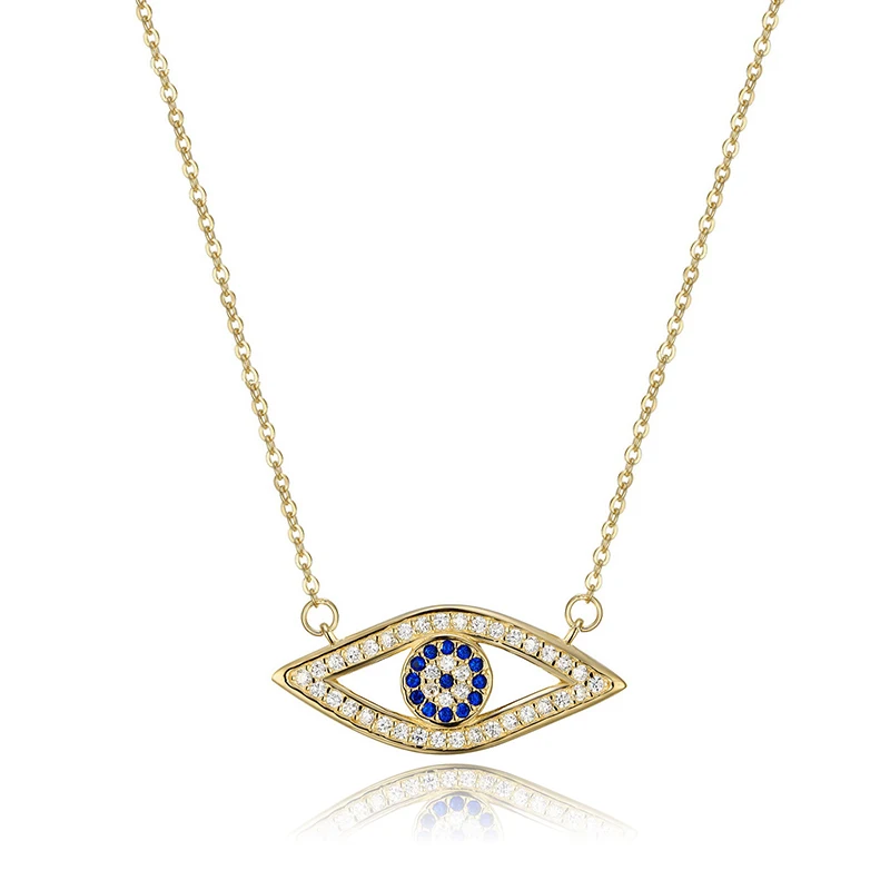 Длинное ожерелье Kaletine с цепочкой полностью из фианита из серебра 925 пробы с голубыми кристаллами сглаза Хамса женское ожерелье с кулоном золотые ювелирные изделия