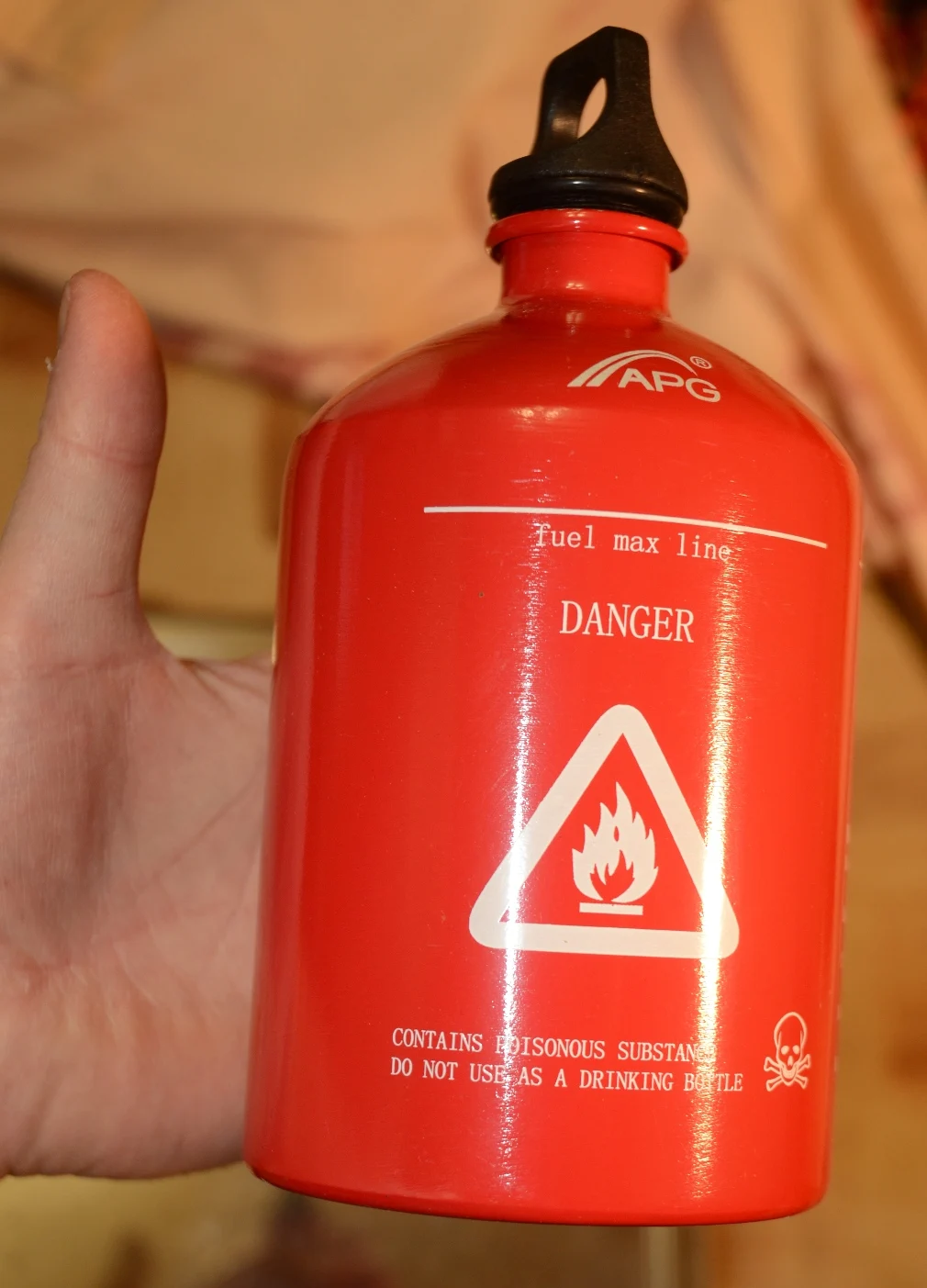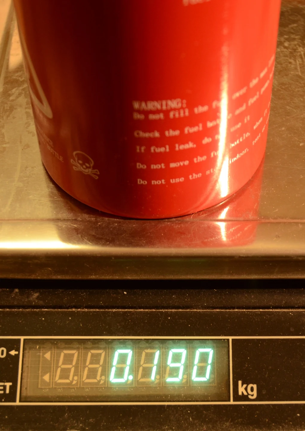 Бутылка толстостенная, не проминается, весит 180 грамм. Объем точный. Залил 1000 мл всесезонного топлива Следопыт (вес стал 840 грамм), проверяю герметичность - посмотрю сколько испарится за 2-3 месяца. Пока не травит и запаха нет, на пробке стоит резиновая прокладка.