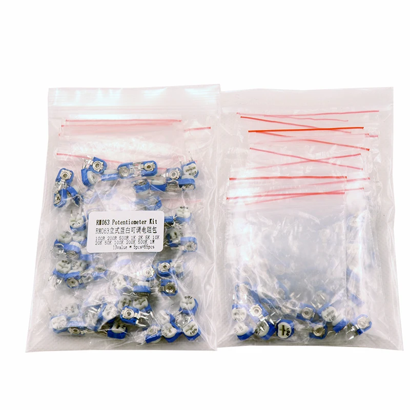 Комплект регулируемых резисторов RM063, 65 шт., вертикальный, синий, белый, 100 Ом-1 м ом, 13 видов * 5 шт. = 65 шт.