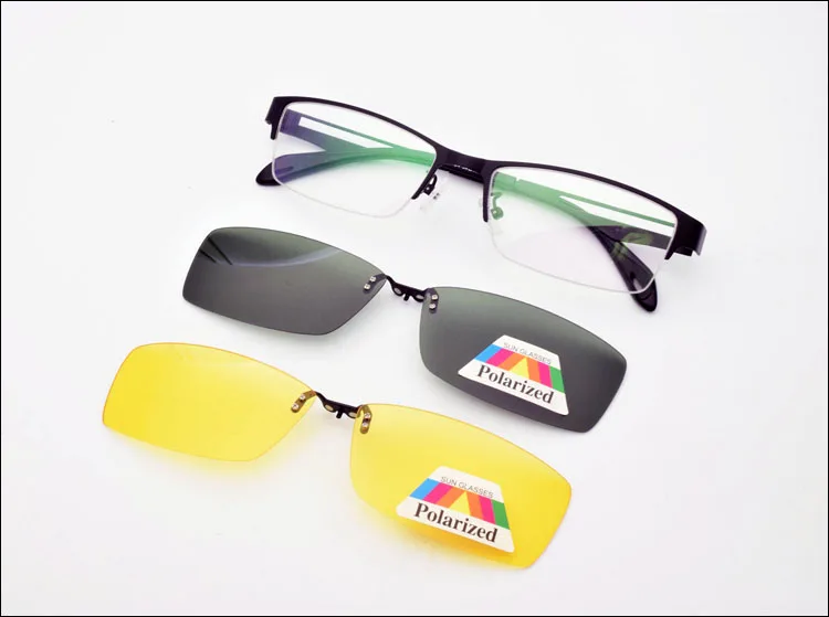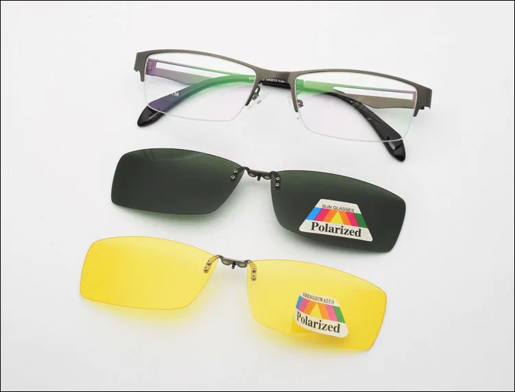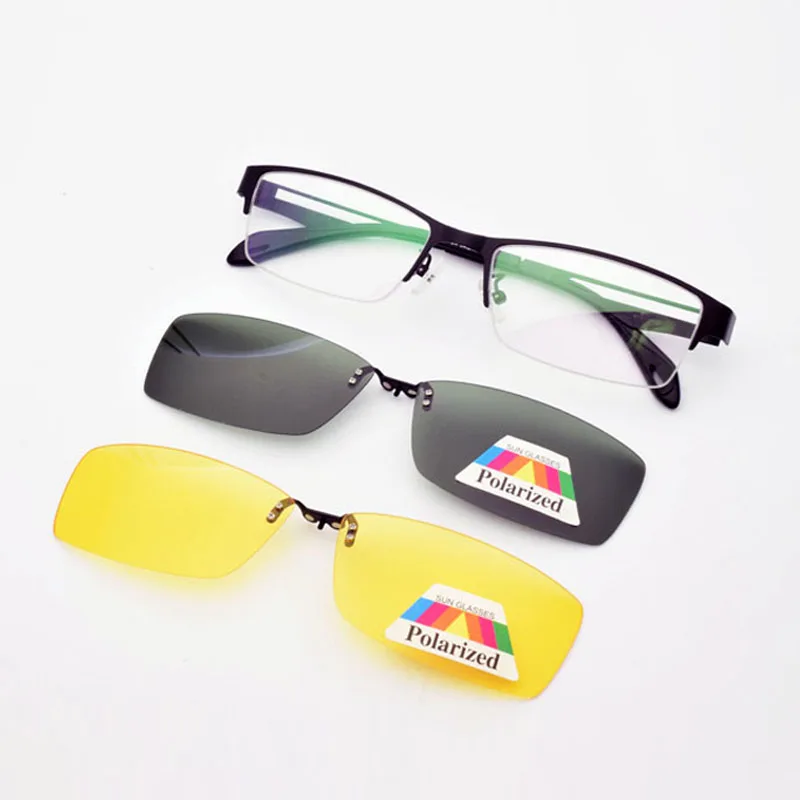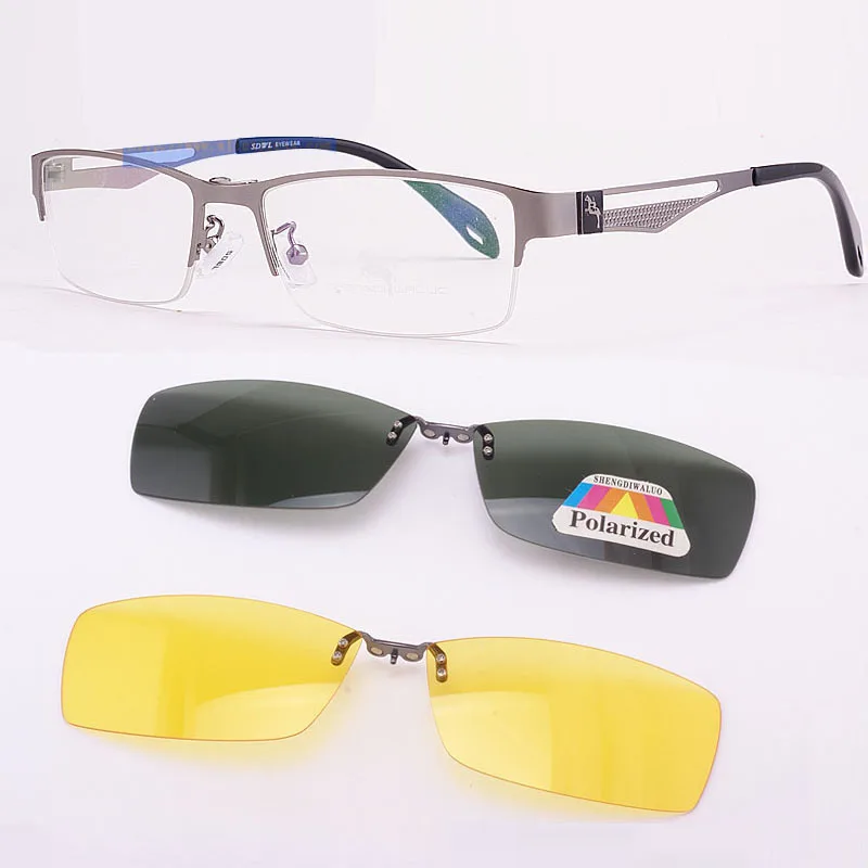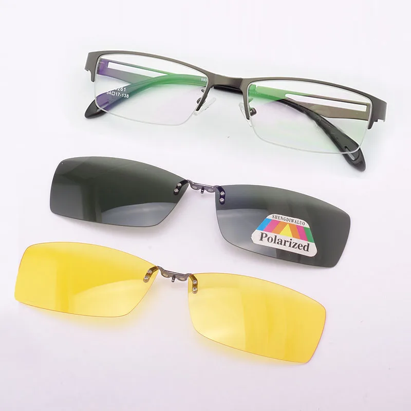 Мужские коричневые оправы из нержавеющей стали, 2 шт., магнитные солнцезащитные очки с клипсой UV400, желтые поляризованные очки ночного видения