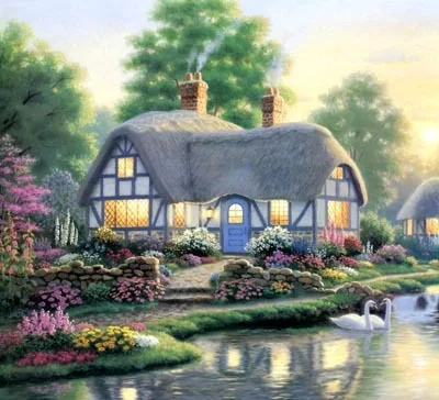 Высококачественный красивый и милый комплект для вышивки крестиком коттедж Dream дом у реки Лебедь