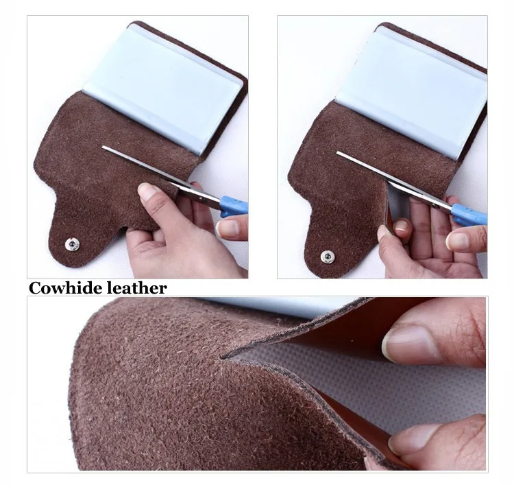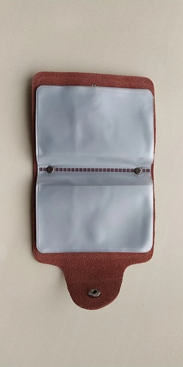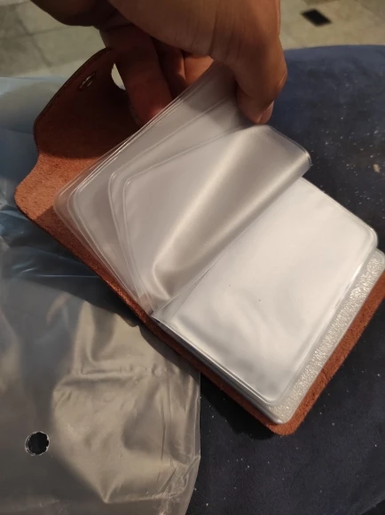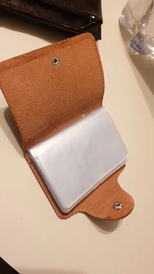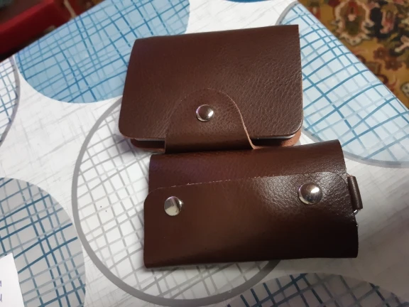 Карточница нормальная, обложка плотная, из материала, похожего на кожу, внутренние клеенки таки же как у всех подобных визитниц, т.е. довольно тонкие, легко можно порвать. Доставка быстрая.