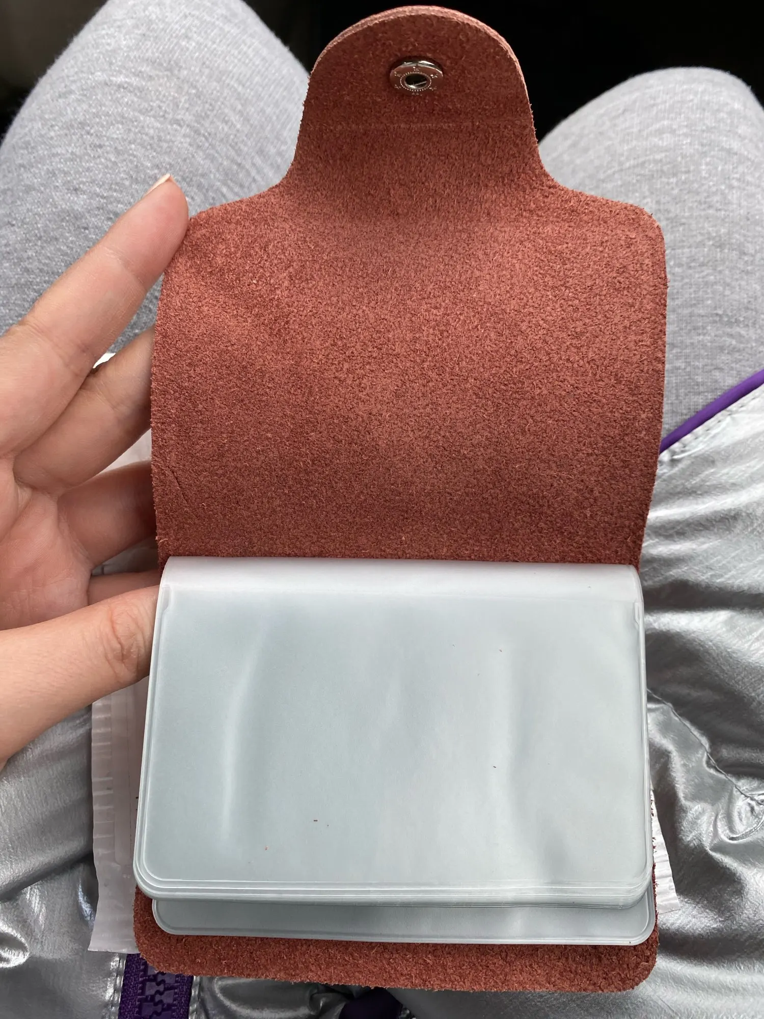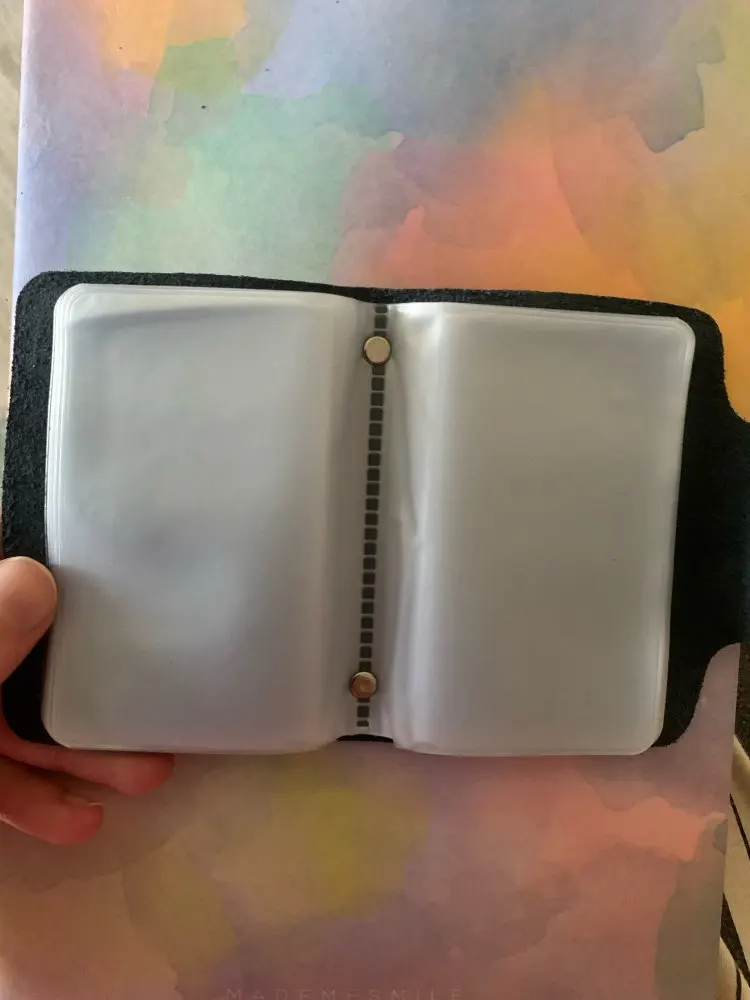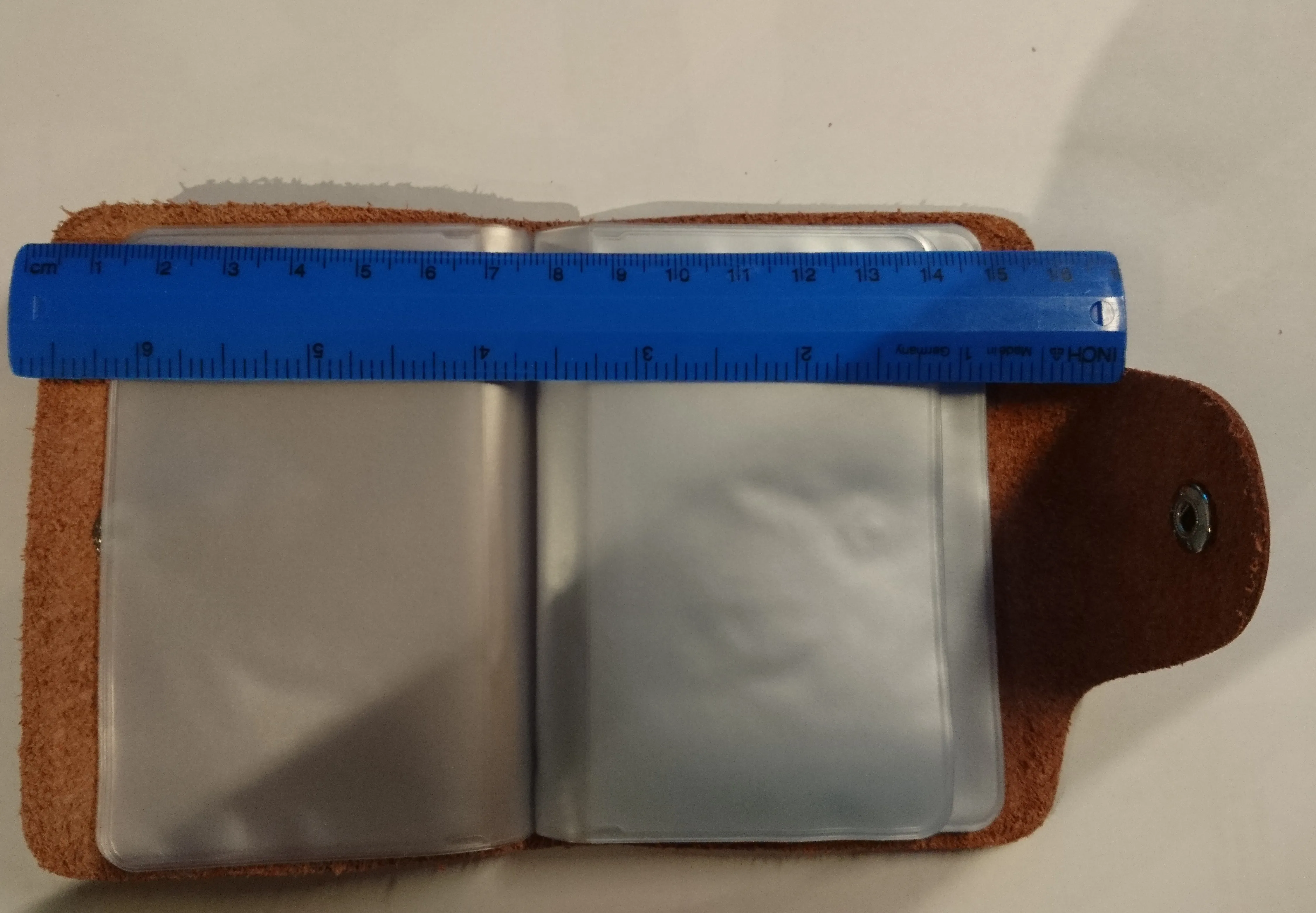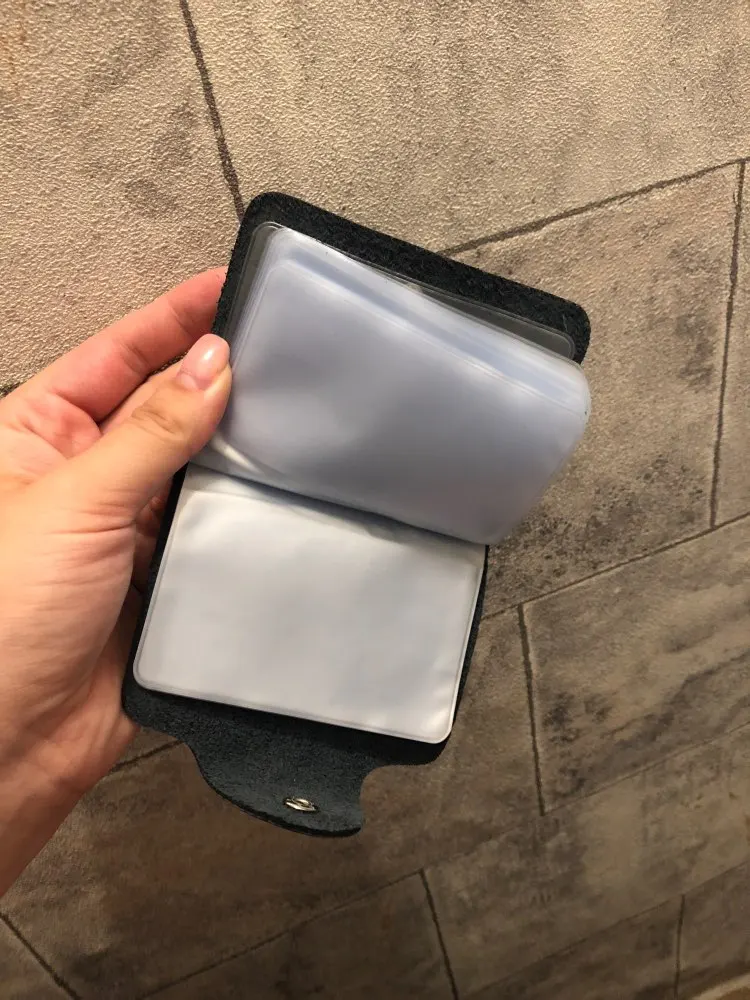 Ждала товар очень долго (он должен был быть у меня уже в начале августа, но Почта России его практически потеряла в моем отделении из-за сбоя плюс он очень долго пересекал границу). Слава богу, все нашли и сегодня привезли в целости и сохранности, упаковано на 5+. С продавцом не общалась. Насчитала, что в книжечку влезет 26 карт, но в одну такую страницу влезет только одна карта (те разъема на обратной стороне нет). Пряжка выглядит прочной. Единственное, что меня смущает - это ткань внутри, она напоминает замшу. Но это на мой вкус тк я обычно с такими именно кожаными книжками ходила. Посмотрим, сколько продержится.