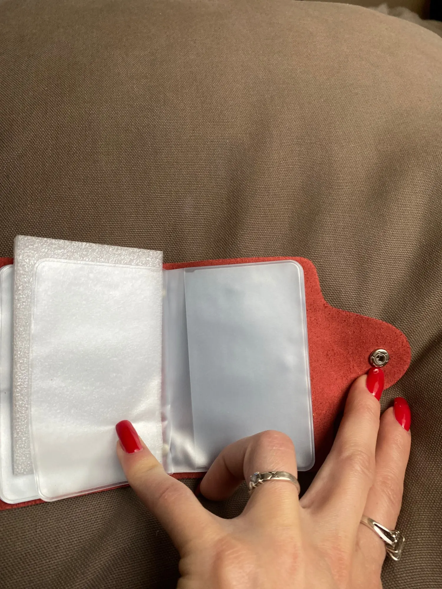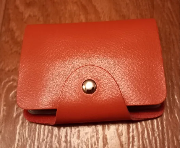 цвет не рыжий, скорее коралловый. карты нужно класть по одной, иначе не закрывается. кармашки не очень удобные, чтобы доставать отправлен быстро, упакован просто в пакет