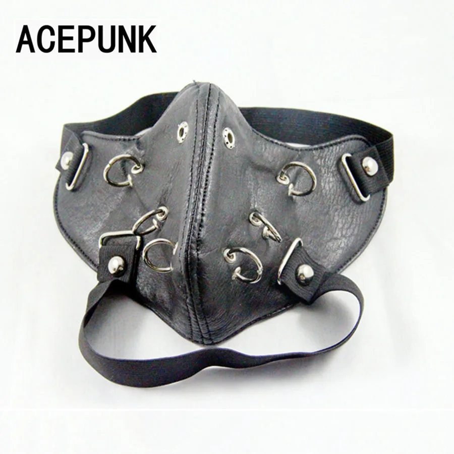 Маска с круглыми заклепками, черная маска из искусственной кожи для косплея, байкеров, 2020