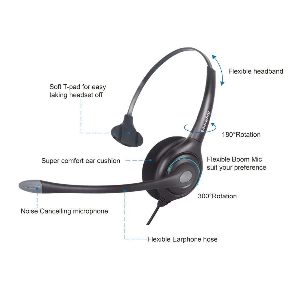 Профессиональные наушники колл-центра RJ9 штепсельная вилка с быстр...