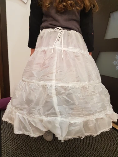 Сначала про товар: хороший пышный подъюбник. Рост дочки 114 см, ниже колена получился, но в талии впритык. Там резинка, липучка, и ещё шнурок вдет, чтобы утянуть, но он не пригодился, естественно. В целом я довольна, мерили с платьем - красота. Теперь о ложке дёгтя в этой истории: Продавец впарил платную доставку. Сначала отправил подъюбник (около 300 руб стоил), а потом смотрю статус: транспортировка отменена. Спрашиваю - в чем дело. Говорит невозможно отправить посылку, т.к. бесплатная доставка для вашей посылки невозможна. Плати 2 бакса или подъюбник не получишь, деньги говорит верну на пей пал. Короче бред. Но мне очень надо было, Новый год скоро. Заплатила ему 2 бакса, слава Богу хоть не кинул: статус той посылки сразу возобновился, и всё пришло. Но я все равно возмущена. Много лет заказываю на али и такое впервые.