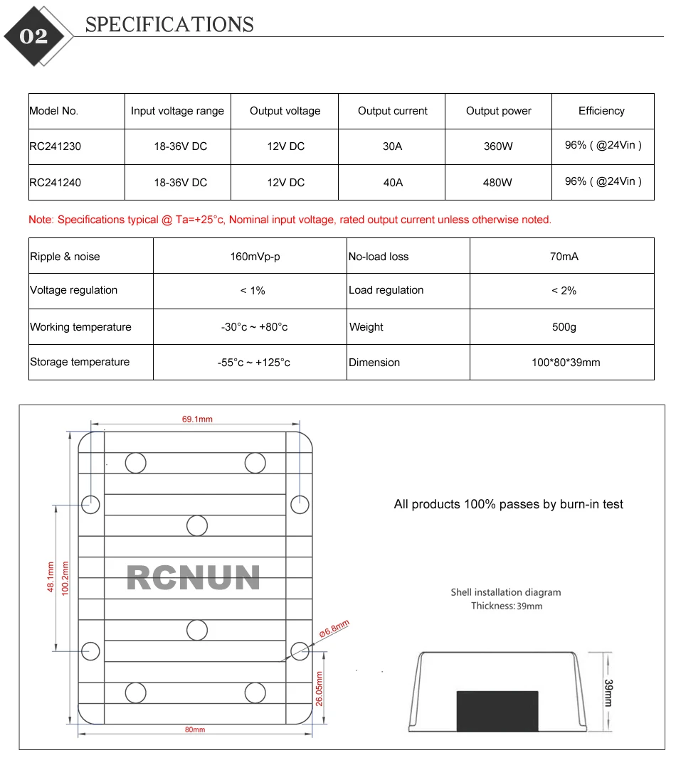 Надежный продукт, понижающий преобразователь постоянного тока с 24 В на 12 В, 30 А, 40 А, преобразователь постоянного тока с 24 В на 12 В, понижающий модуль DC-DC RCNUN с CE RoHS