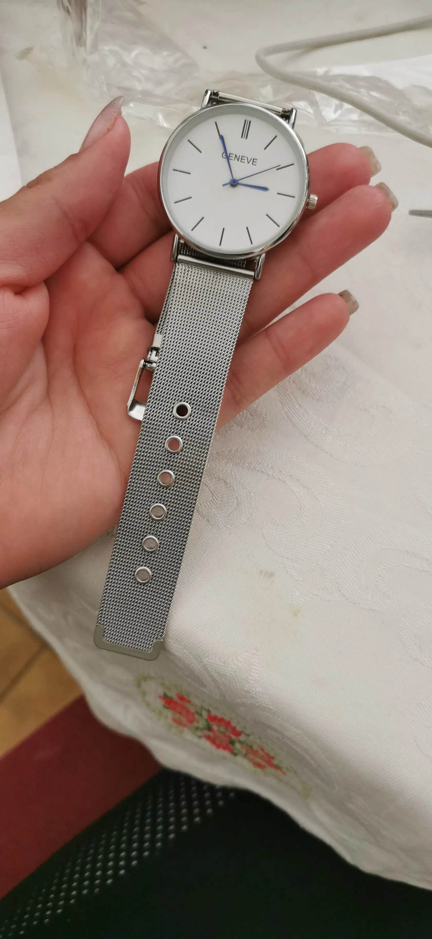 Очень рад, часы выглядят отлично! Заказал еще один. Мое запястье Очень узкое, и последнее отверстие делает его идеальным. Отличная покупка. Доставка занимает 6 недель.