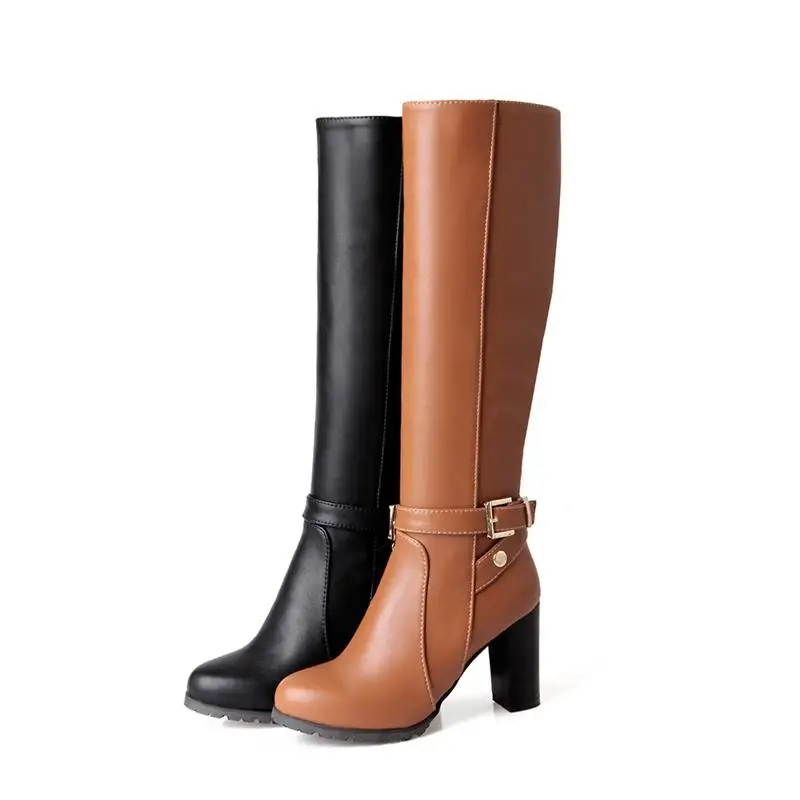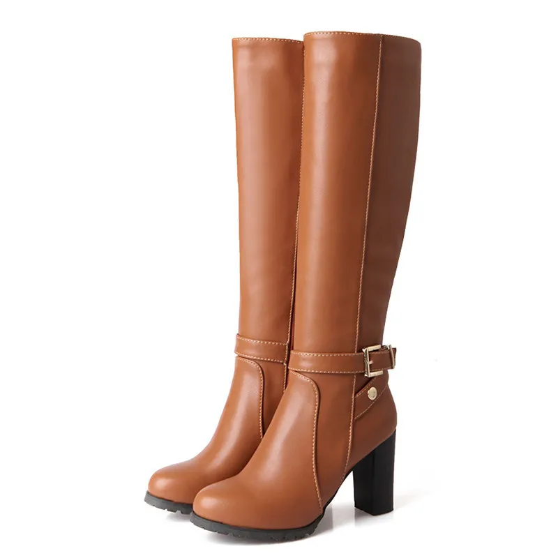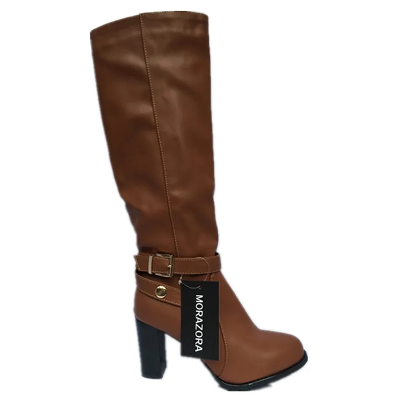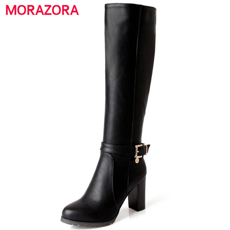 Женские сапоги на высоком каблуке MORAZORA, черные сапоги до колена, из искусственной кожи, с пряжкой, осенне-зимний сезон 2020