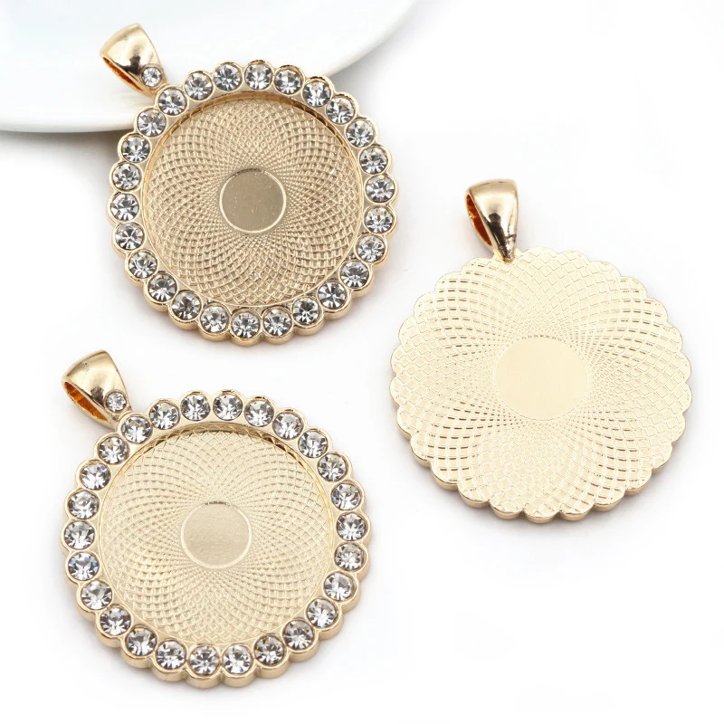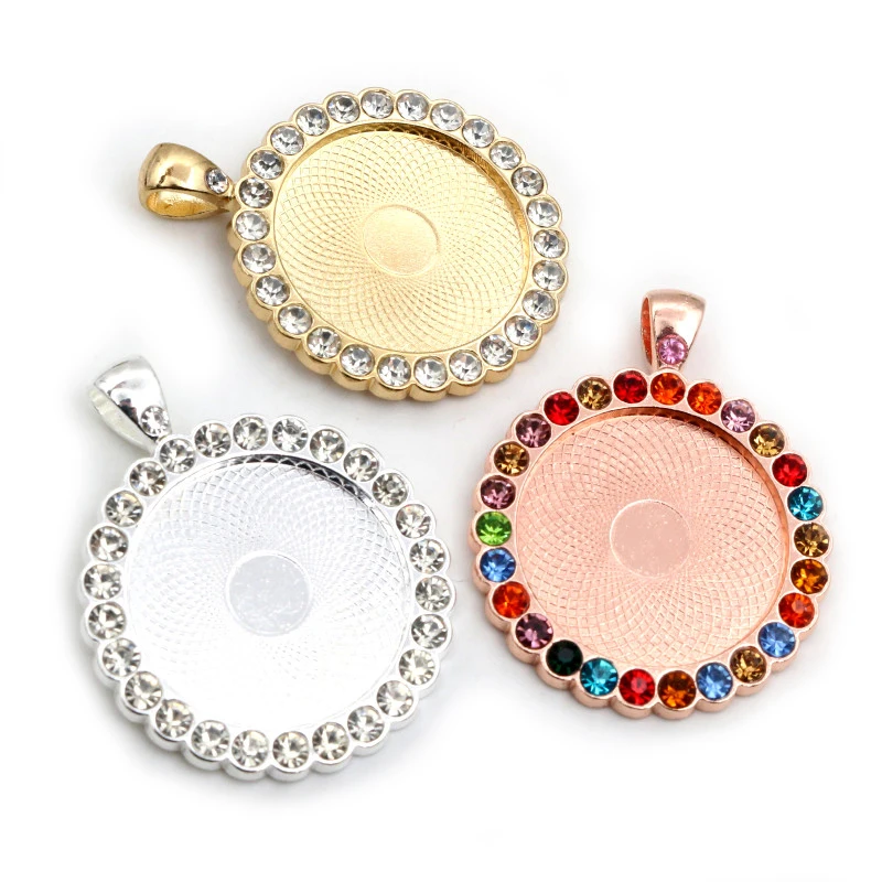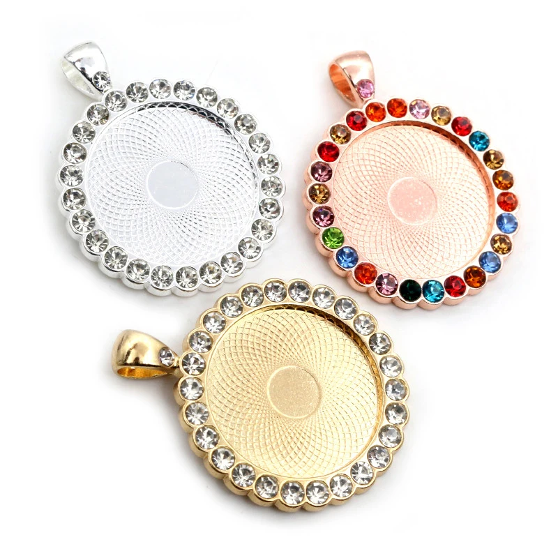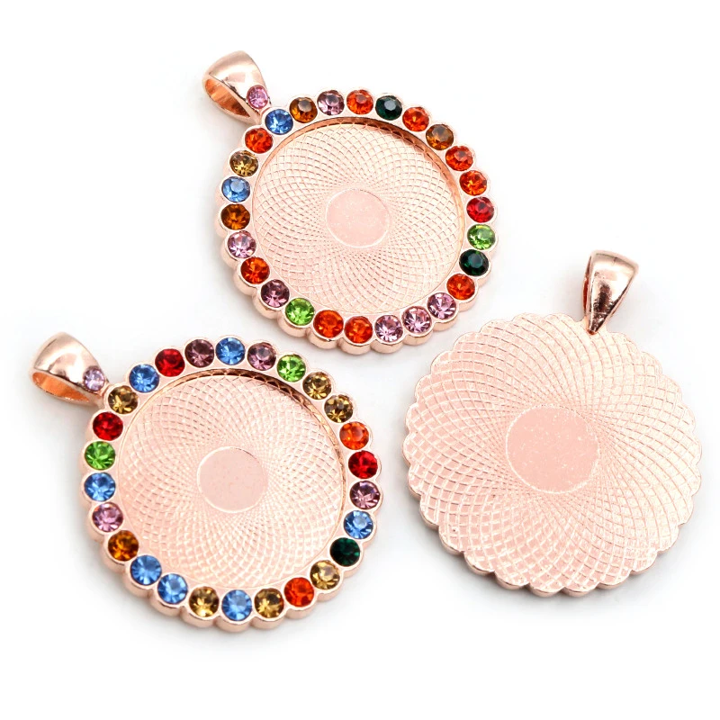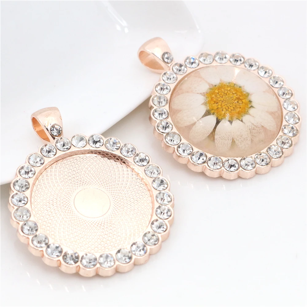 Новая мода 5 шт 25 мм внутренний размер розовое золотобронзапосеребренные прозрачные стразы кабошон основа подвеска подвески