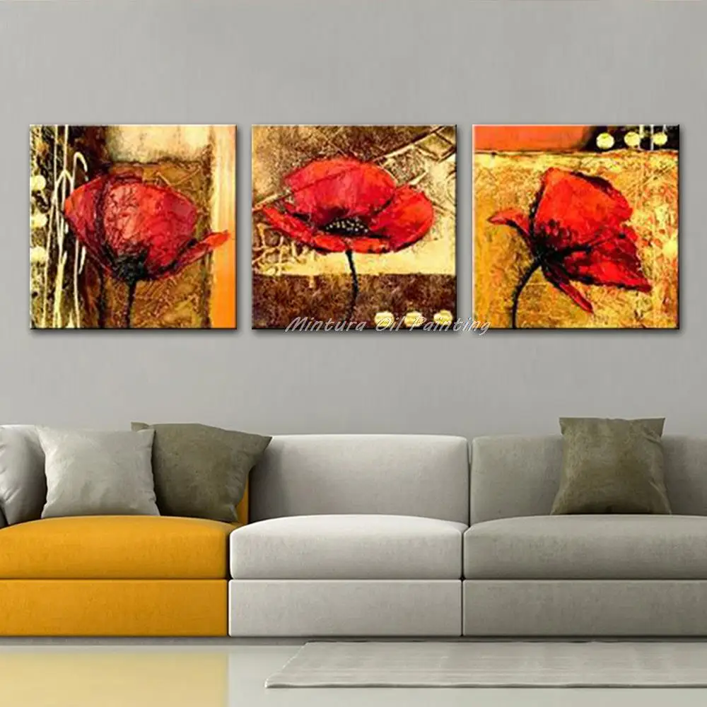 Mintura ручная роспись абстрактные красивые красные цветы картина маслом на холсте 3 шт./компл. Настенная картина для гостиной домашний декор