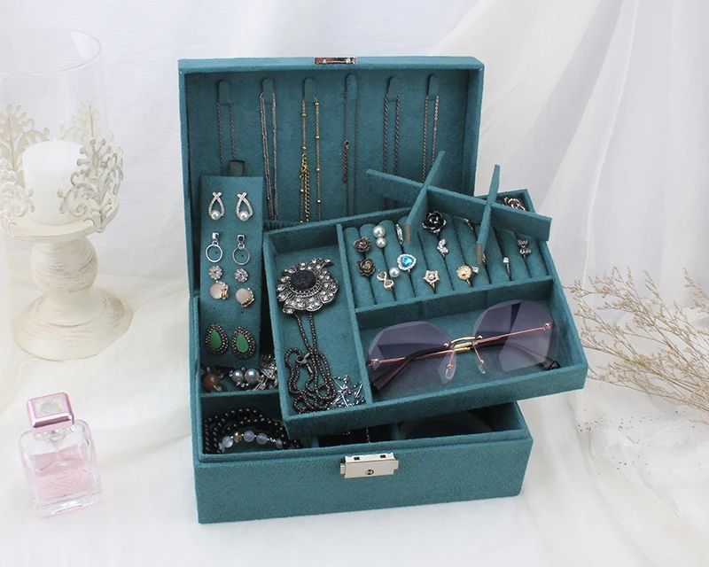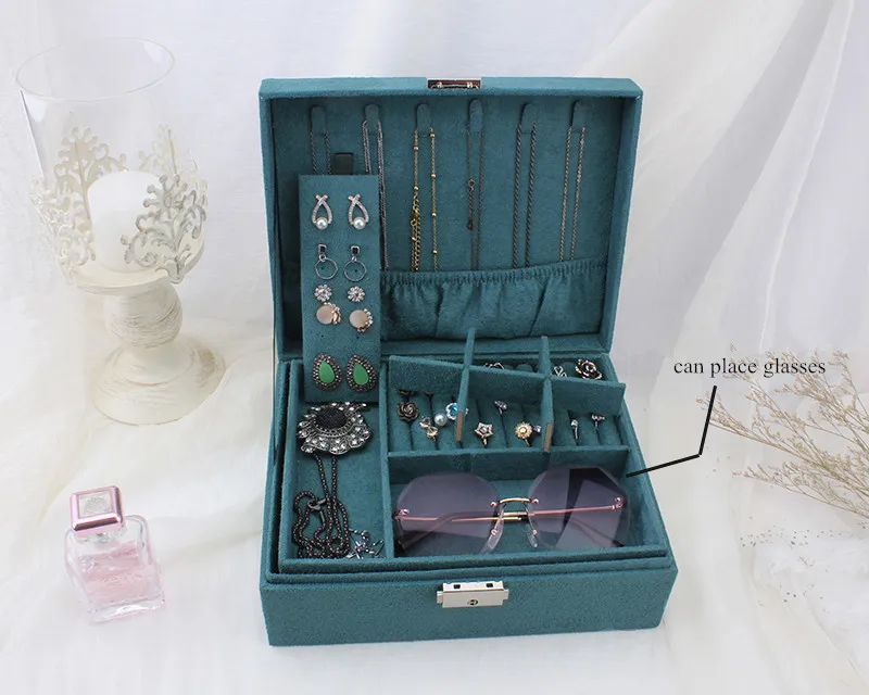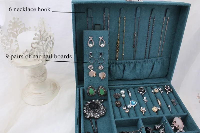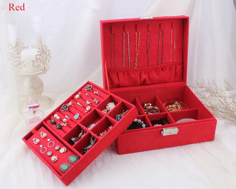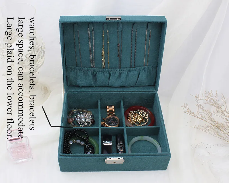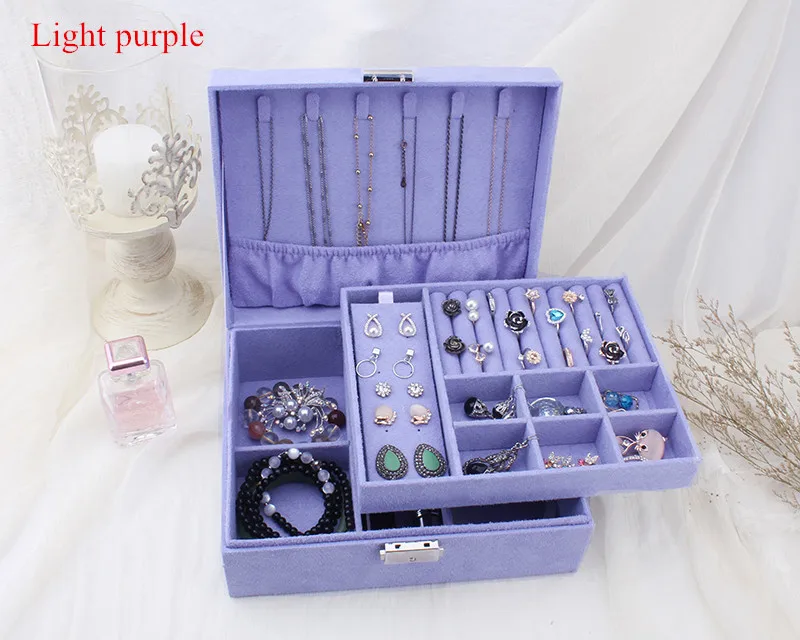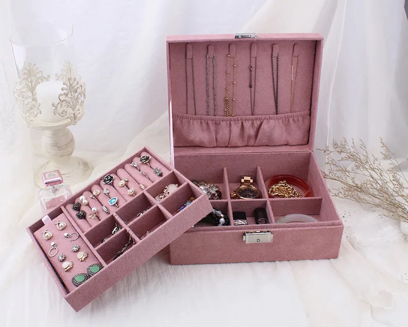 Корейский Бархатный органайзер для косметики в стиле ретро, креативная простая двухслойная шкатулка для ювелирных изделий, многофункциональная шкатулка для драгоценностей