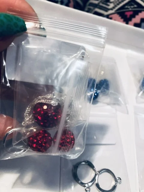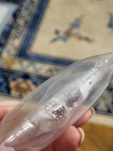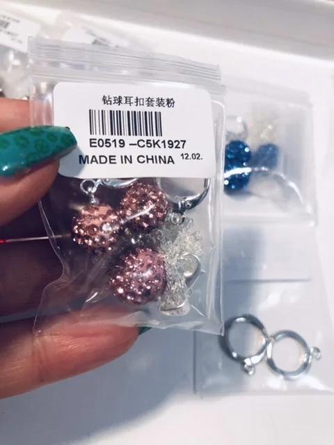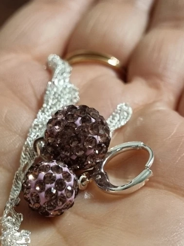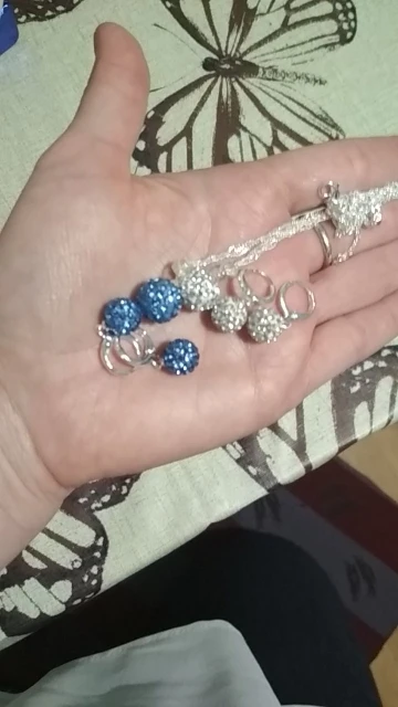 Серьги при ближайшем рассмотрении оказались неровно сформированным шариком из какого-то затвердевшего материала, обильно усыпанные стразами. За эту цену, в принципе, ничего другого не стоило ожидать. Смотрятся мило, если не приглядываться. Очень хорошая упаковка-пакет наполнен воздухом. Пришли быстро.