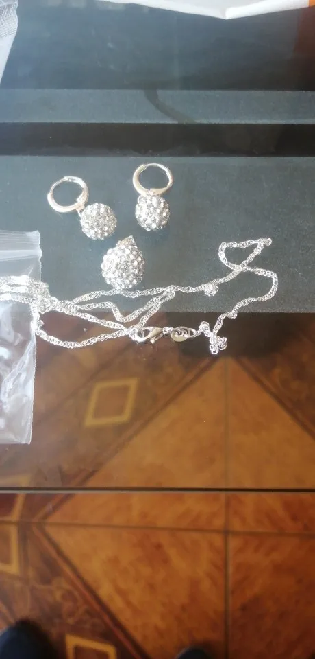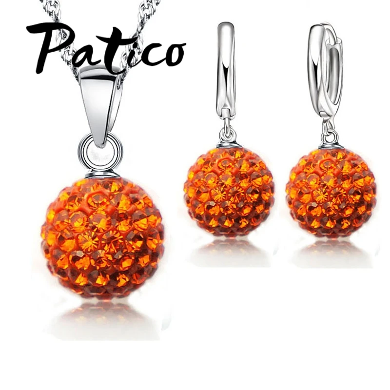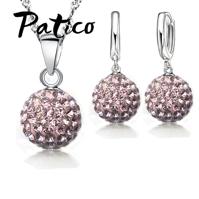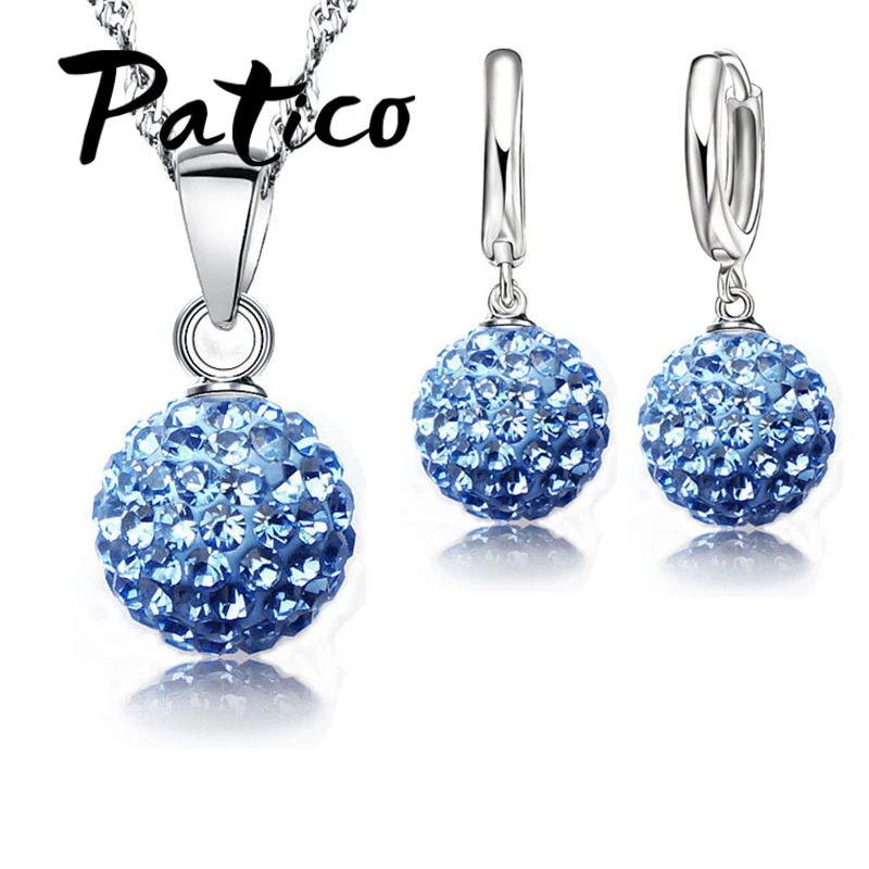 Горячие Новые Ювелирные наборы 925 серебро австрийский кристалл проложить диско шар рычаг задняя серьга женское ожерелье с подвеской