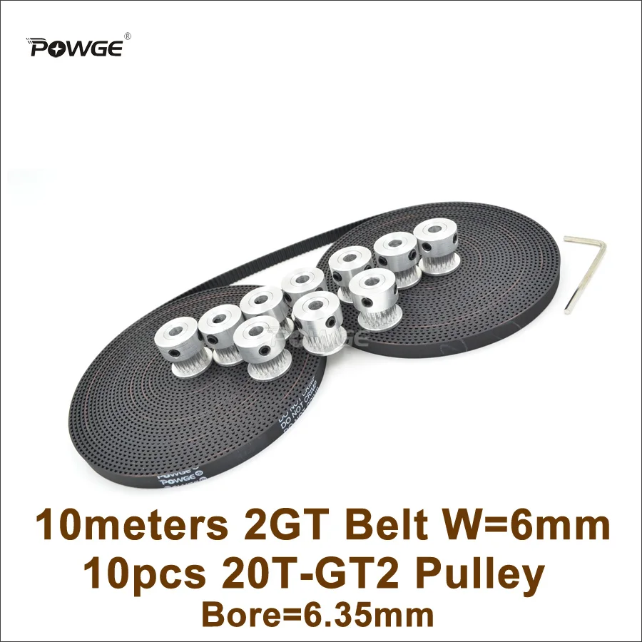 POWGE 10 шт. 20 зубцов GT2 зубчатый шкив диаметр 6,35 мм + 10 м 2GT Ширина ремня ГРМ 6 мм 20 зубьев 20 T 2GT шкив 3D части принтера