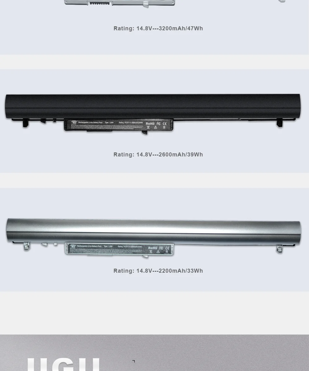 14,8 V-3200mAh/47WH14,8 V-2600mAh/39WH14,8 V-2200mAh/33WH